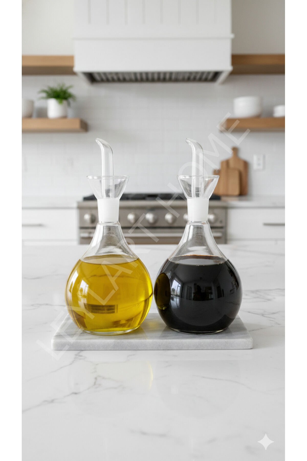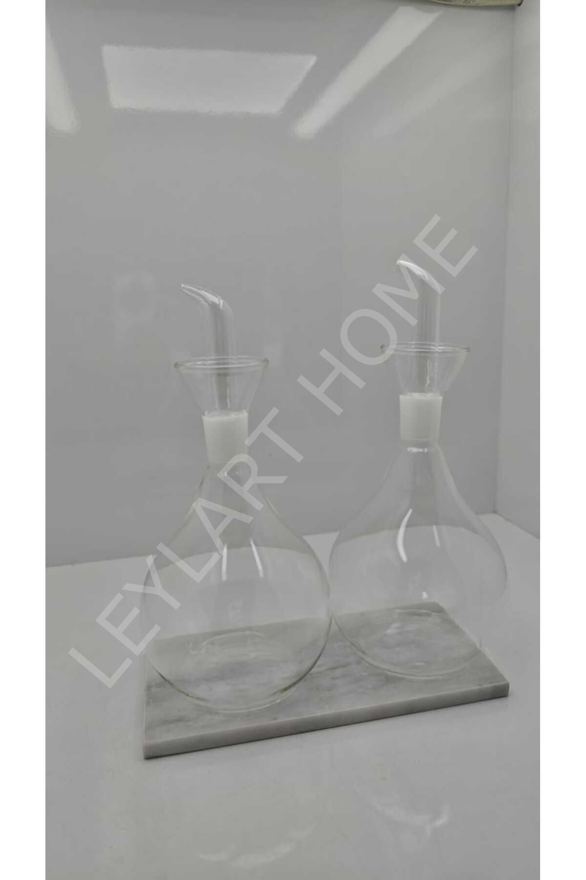 2 Adet 900 ml Borosilikat Tombul Cam Yağdanlık ve Mermer Stantlı – Yağlık Sirkelik Seti