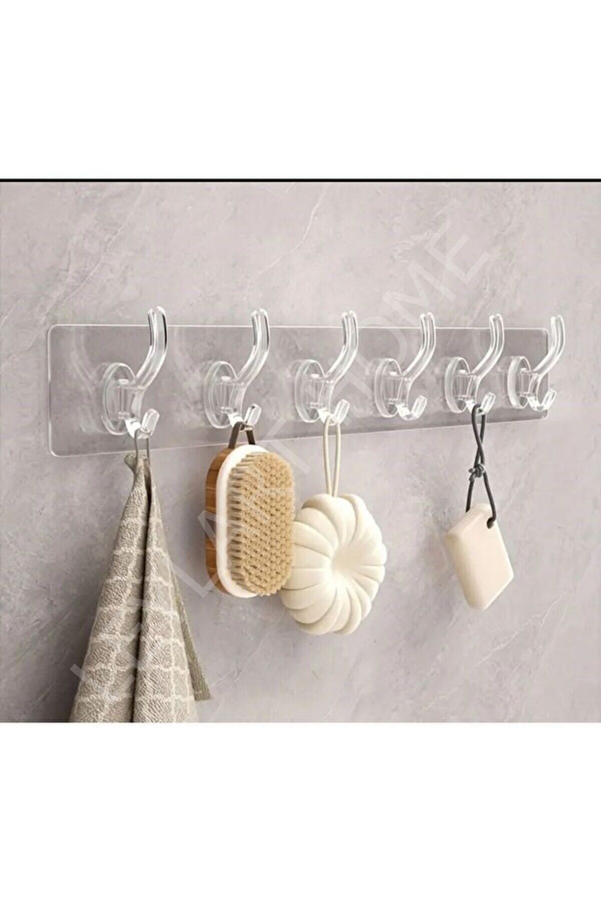 2 Lİ Kendinden Yapışkanlı Güçlü 6 LI Şeffaf Askılık-banyo-mutfak-kapı Arkası