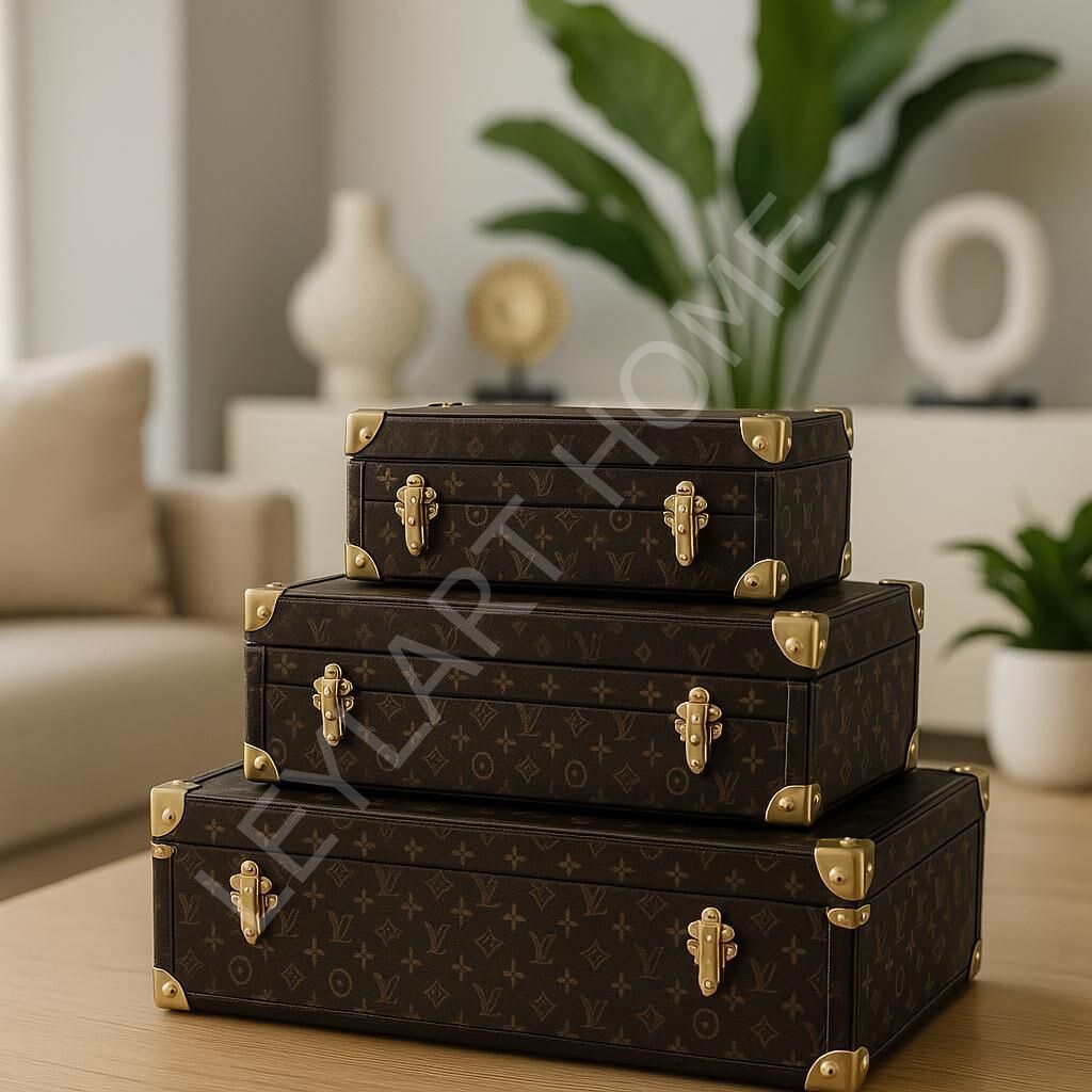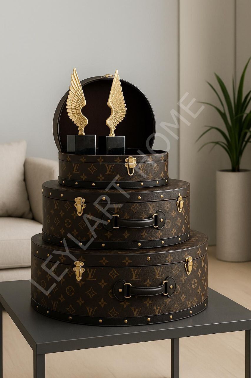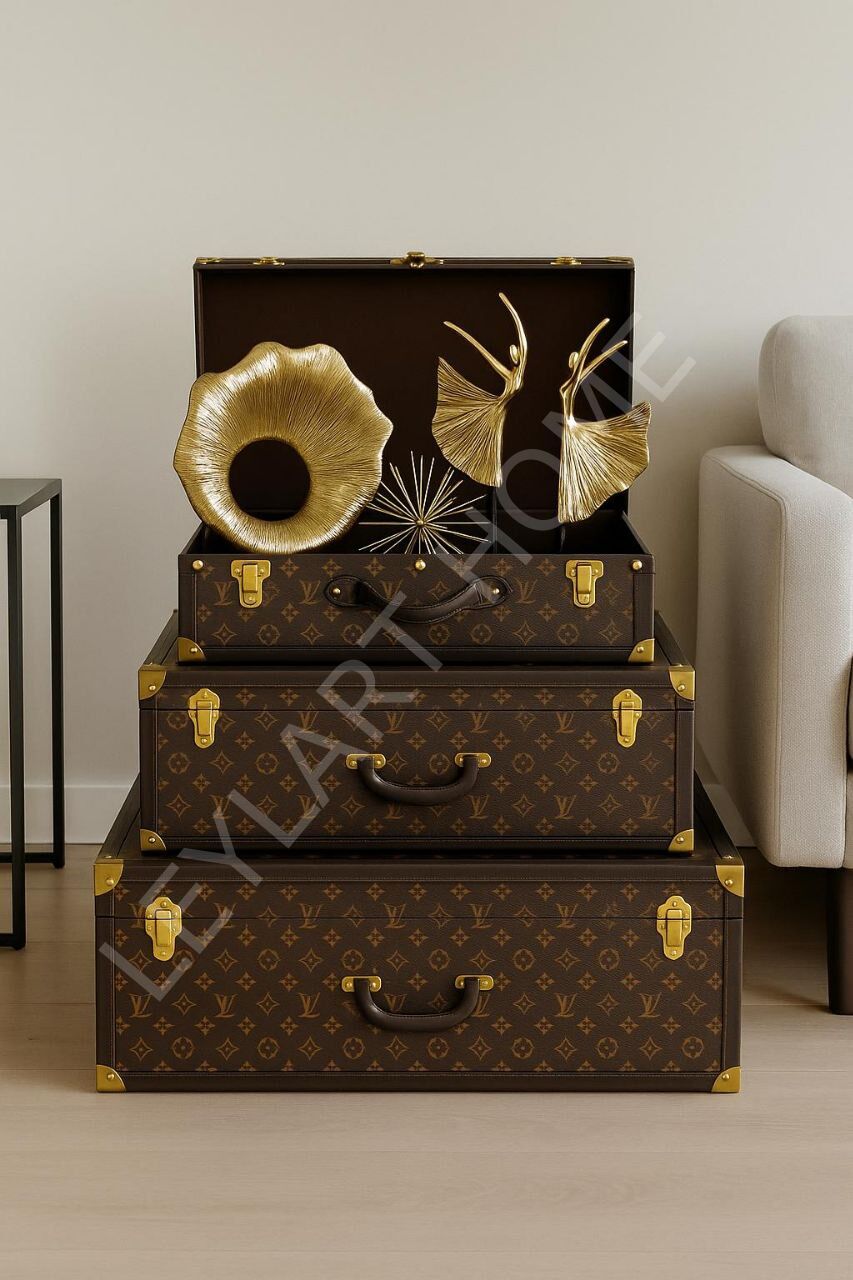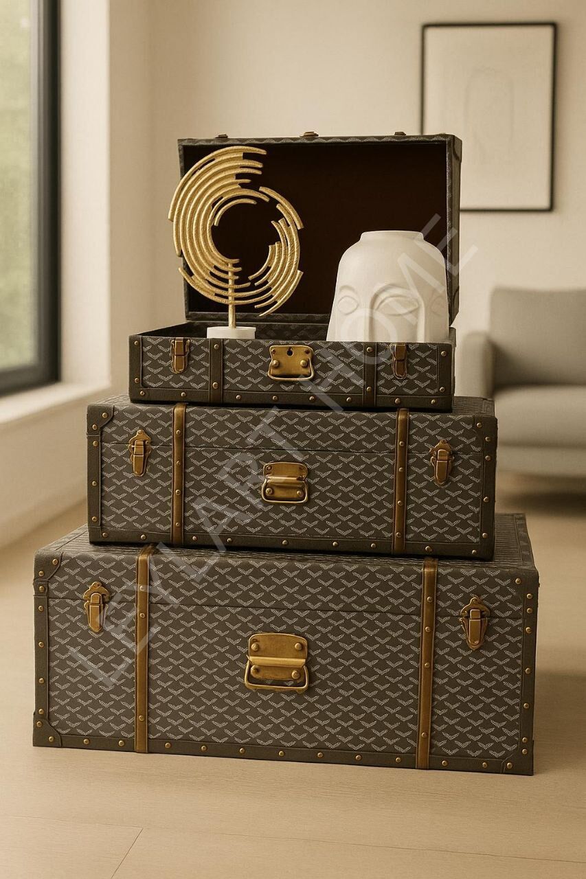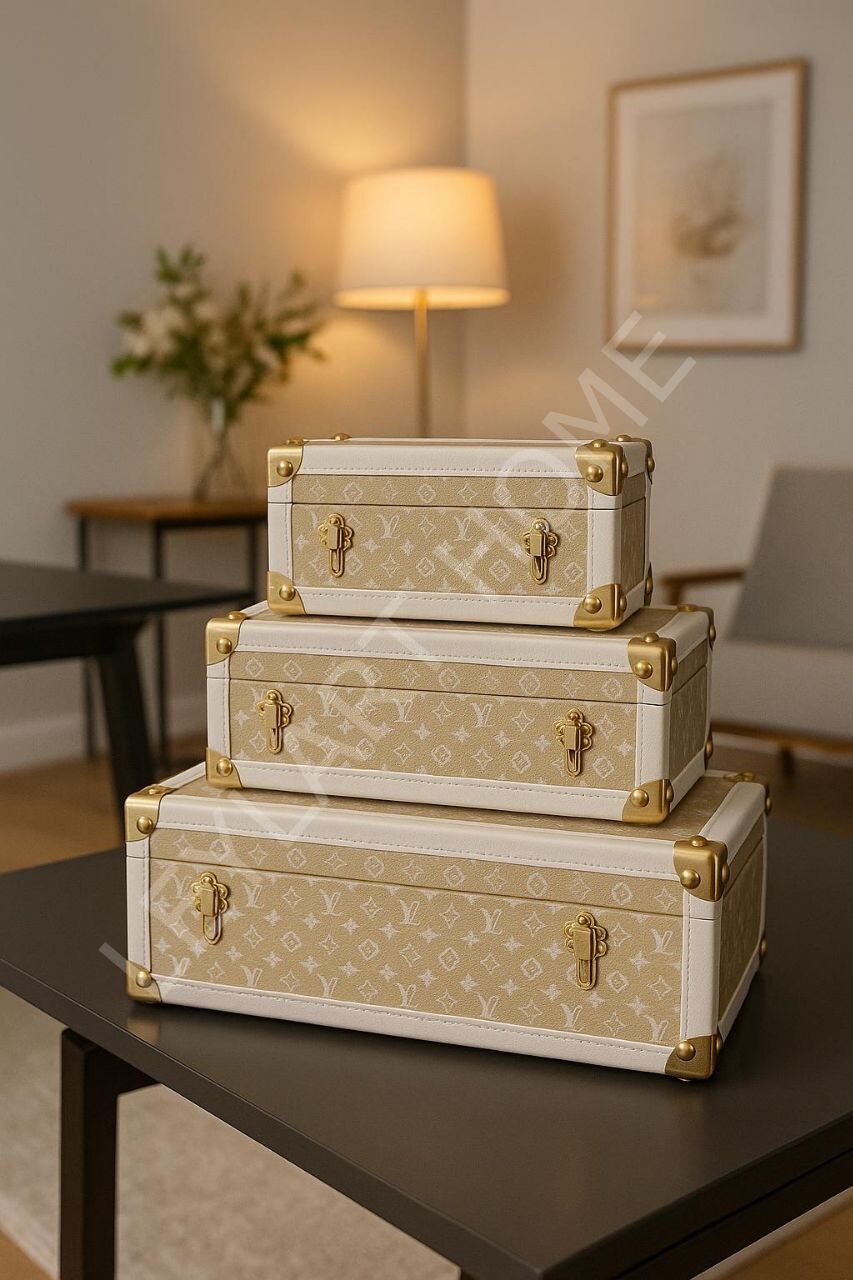 Evinizde hem şıklığı hem de fonksiyonelliği bir araya getiren bu lüks valiz görünümlü saklama kutusu seti, dekorasyon tutkunlarının favorisi olmaya aday. Özgün desenli yüzeyi, altın sarısı metal kilit ve köşe detayları ile geçmişin zarafetini modern dokunuşlarla buluşturuyor.