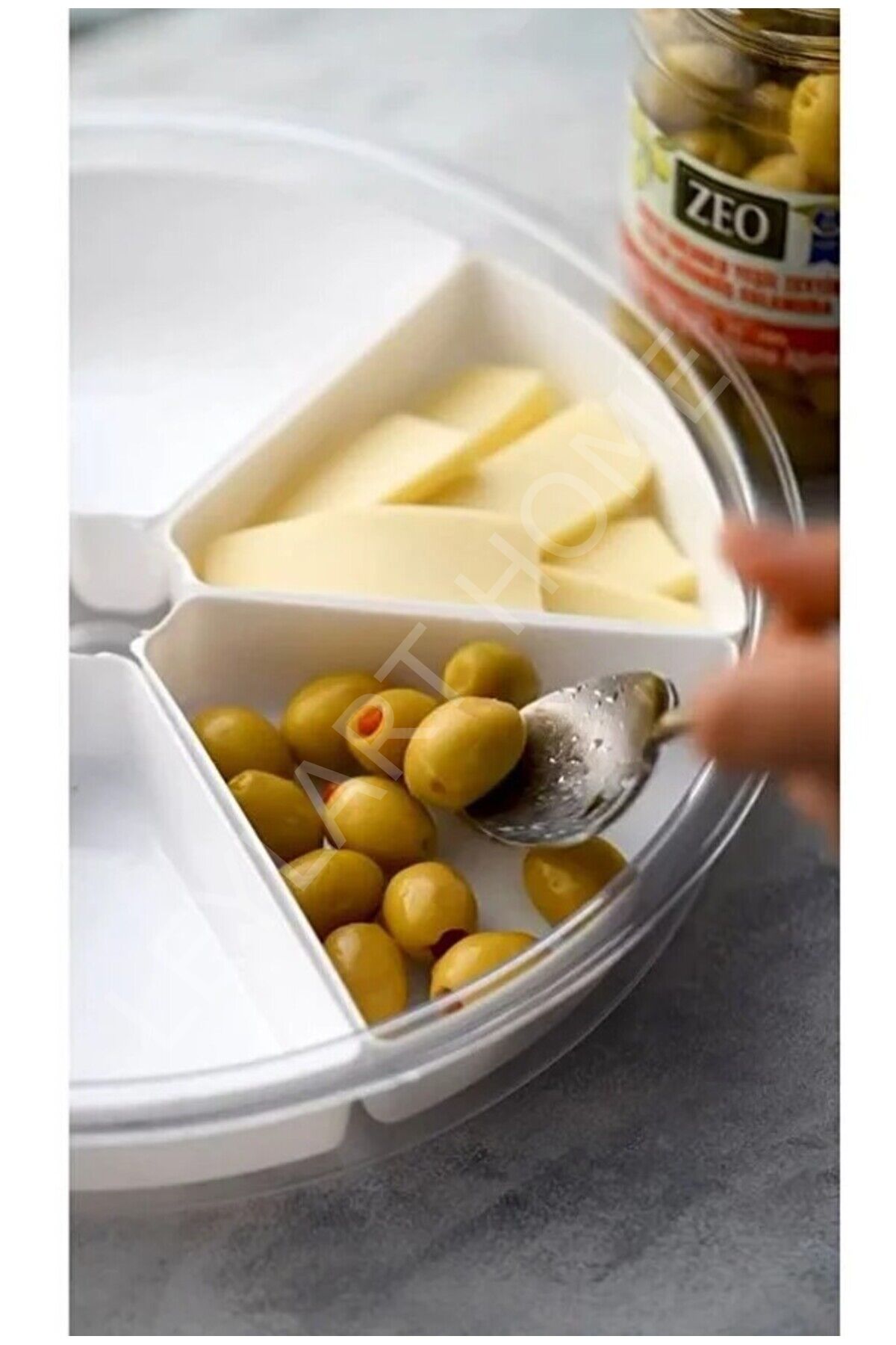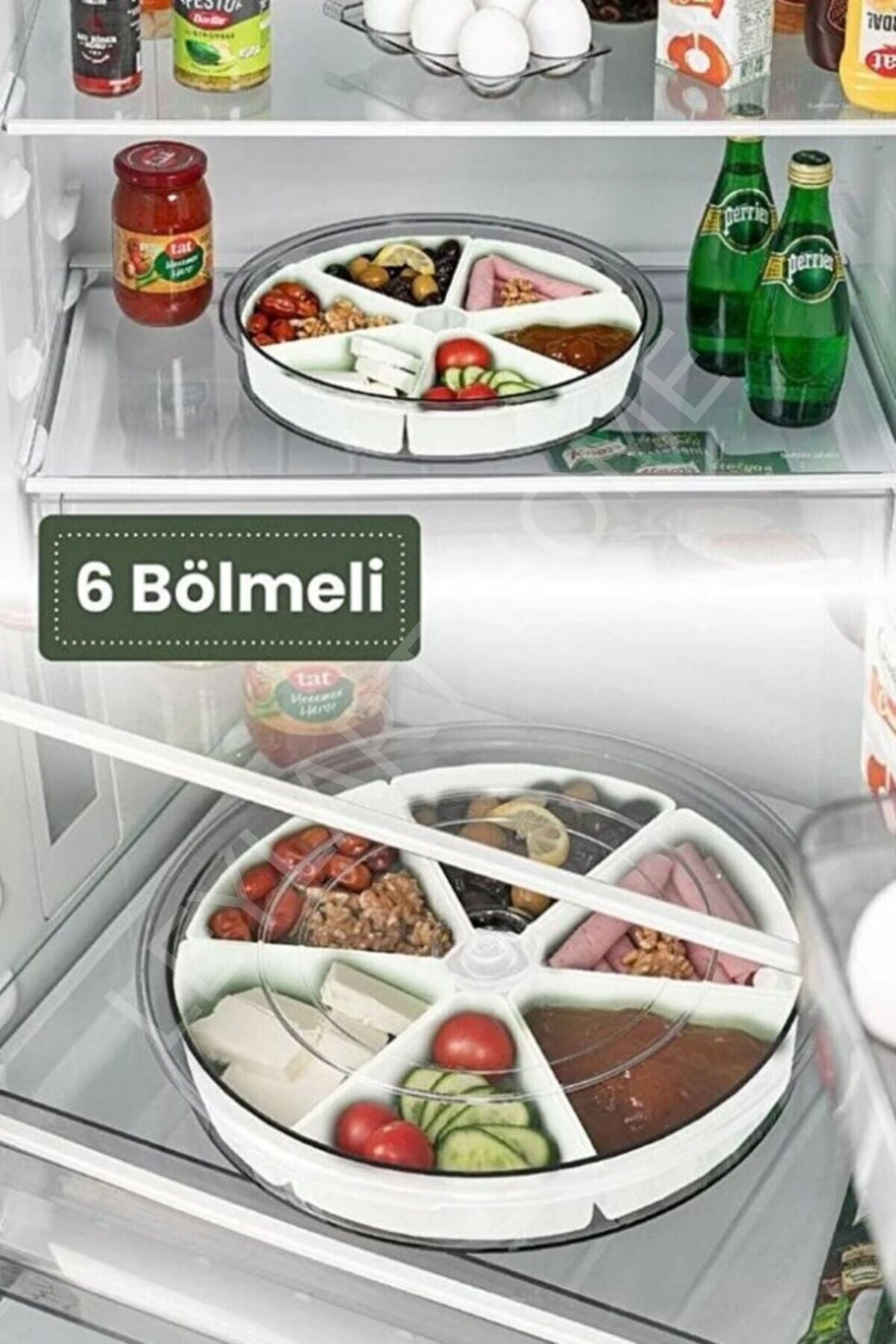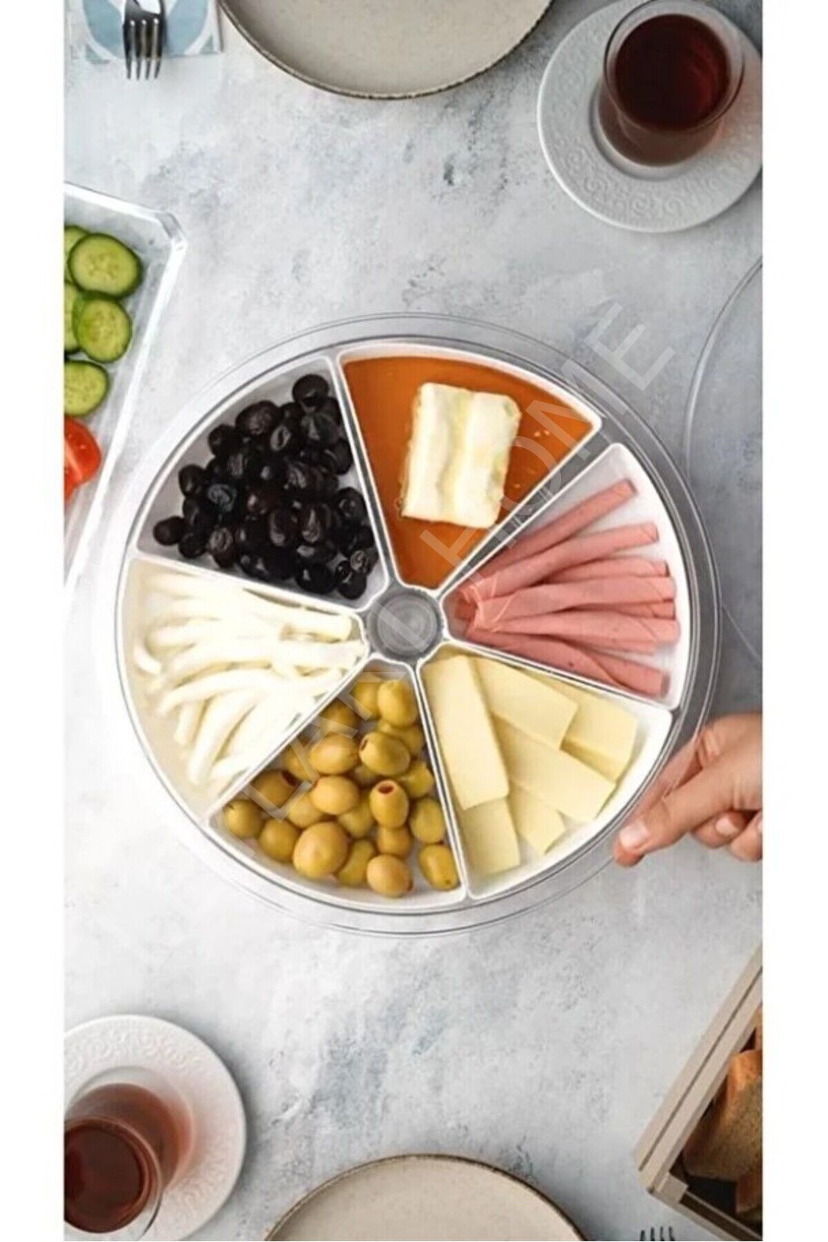 360° Dönen Kapaklı 6 Bölmeli Üçgen Kahvaltılık & Sunumluk Seti