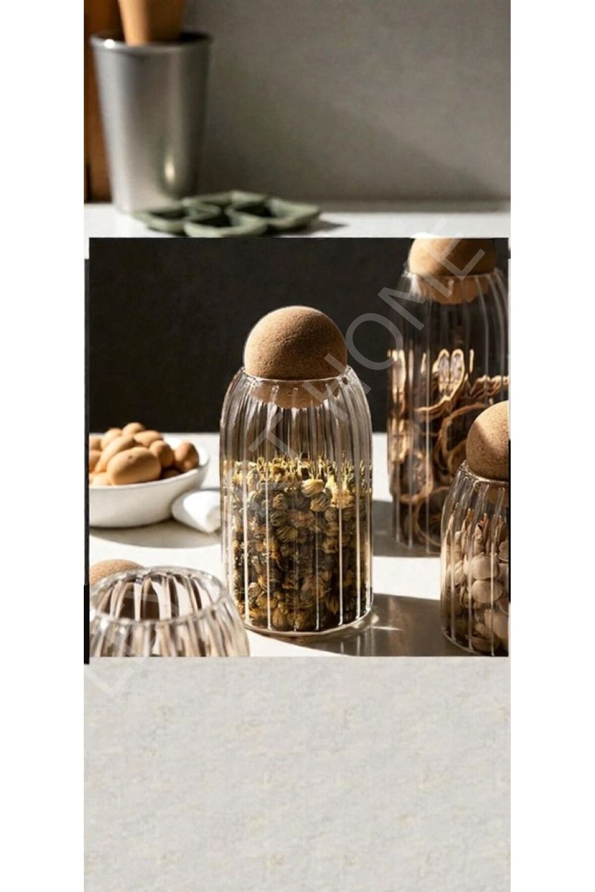 3’LÜ Çizgili– Top Mantar Kapaklı Kavanoz Seti