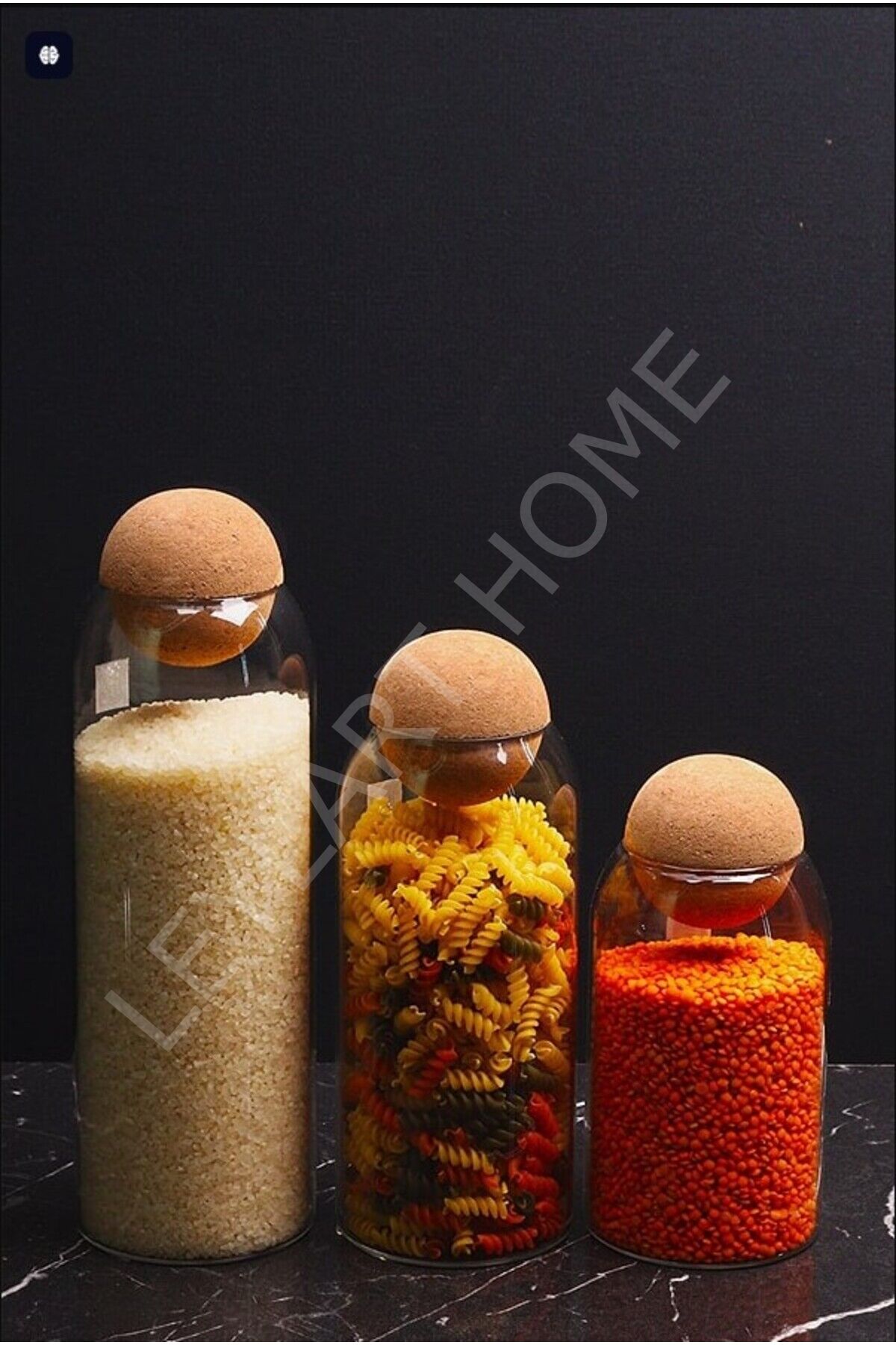 3’LÜ Düz Cam – Top Mantar Kapaklı Kavanoz Seti