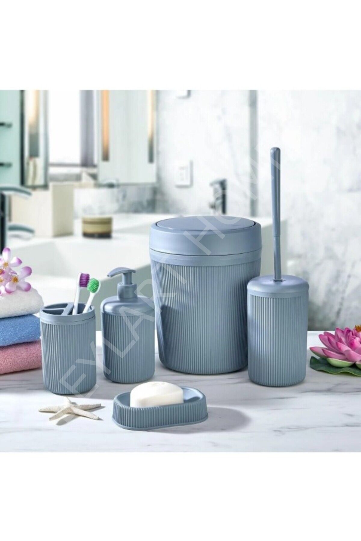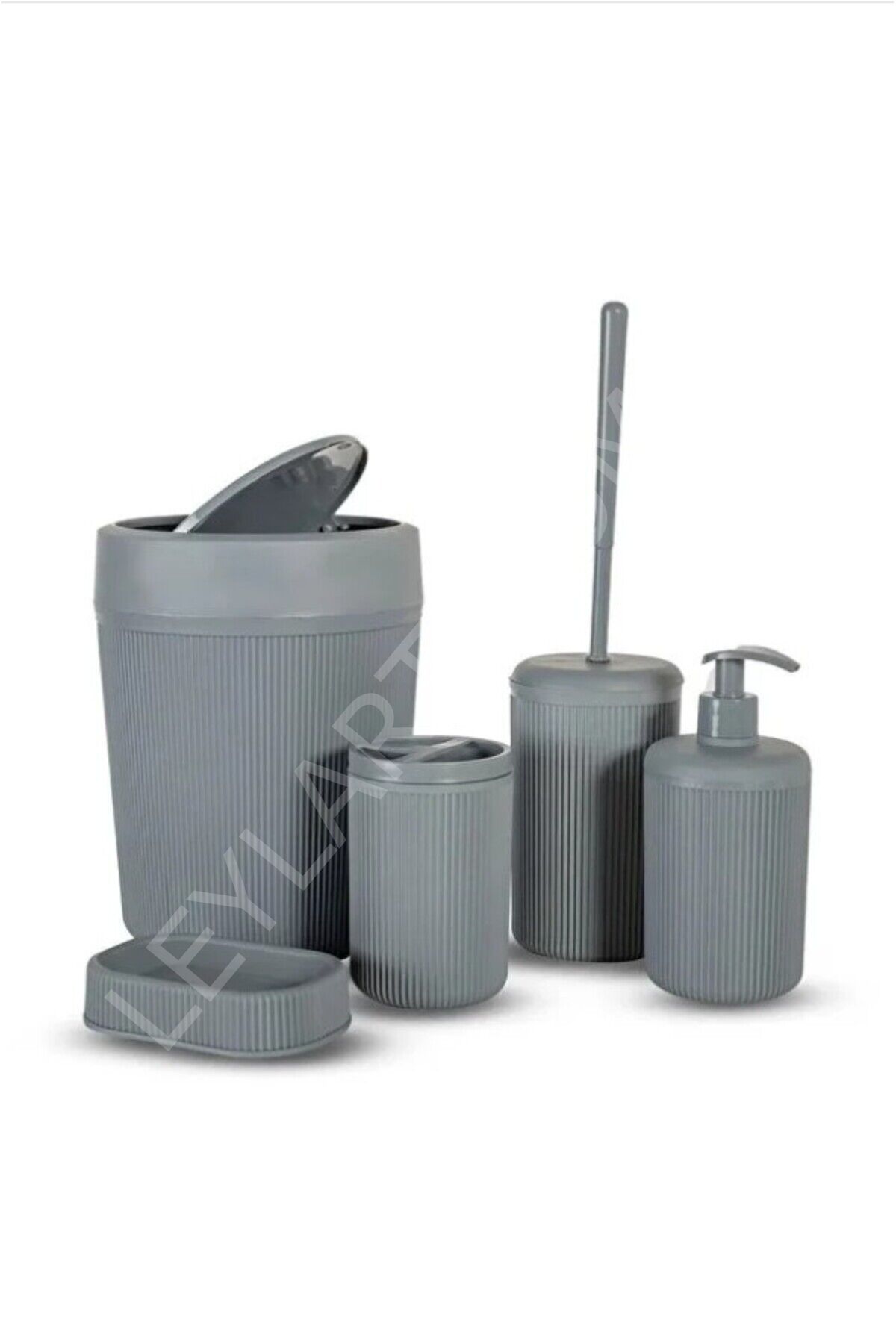 5 parçadan oluşan banyo seti, ihtiyacınız olan tüm temel eşyaları tek pakette sunar.; - 7 litre kapasiteli çöp kovası ile geniş hacimde atıkları rahatlıkla toplayabilirsiniz.; - Pratik kullanım için tasarlanmış tuvalet fırçası, banyonuzda hijyenik bir temizlik sağlar.; - Sabunluk ve diş fırçalığı gibi diğer aksesuarlar, günlük banyo rutininizi kolaylaştırır.; - Dayanıklı plastik materyalden üretilmiş olup uzun ömürlü kullanım vaat eder.; - Set içeriğiçöp kovası, sabunluk, sıvı sabunluk, diş fırçalık ve tuvalet fırçası olarak iletilecektir.; - Şık tasarımı ve yüksek kalitesi ile banyonuzda modern ve uyumlu bir tasarım sağlayacaktır.; - Yerli üretimdir.; - Gri, bej ve beyaz olmak üzere üç farklı renkten satışa sunulmuştur.