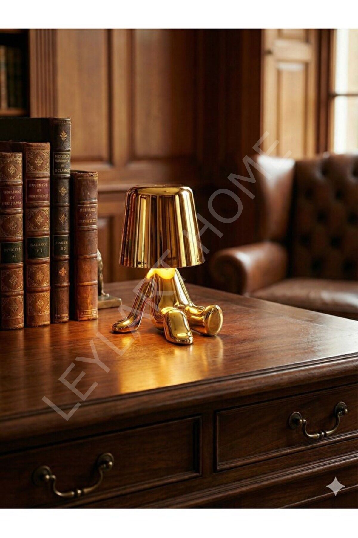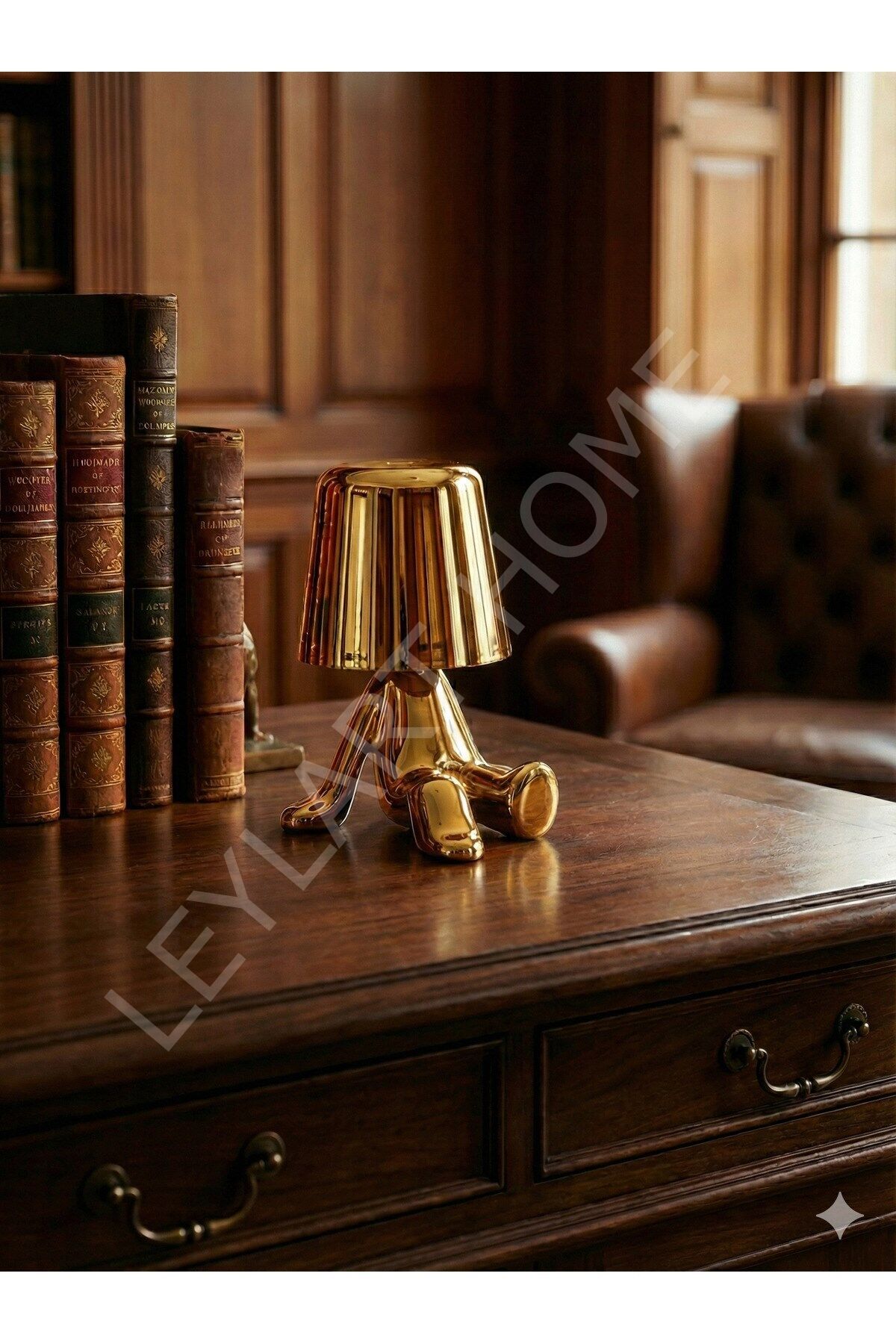 Altın Düşünen Adam - Dokunmatik ve Şarjlı Tasarım Masa Lambası