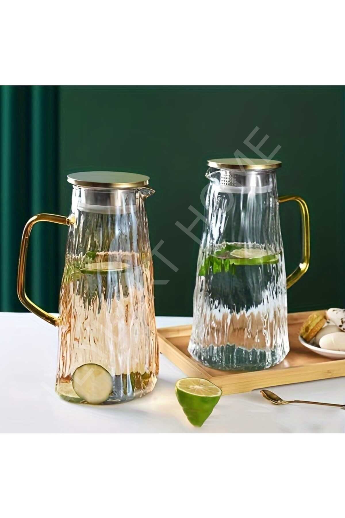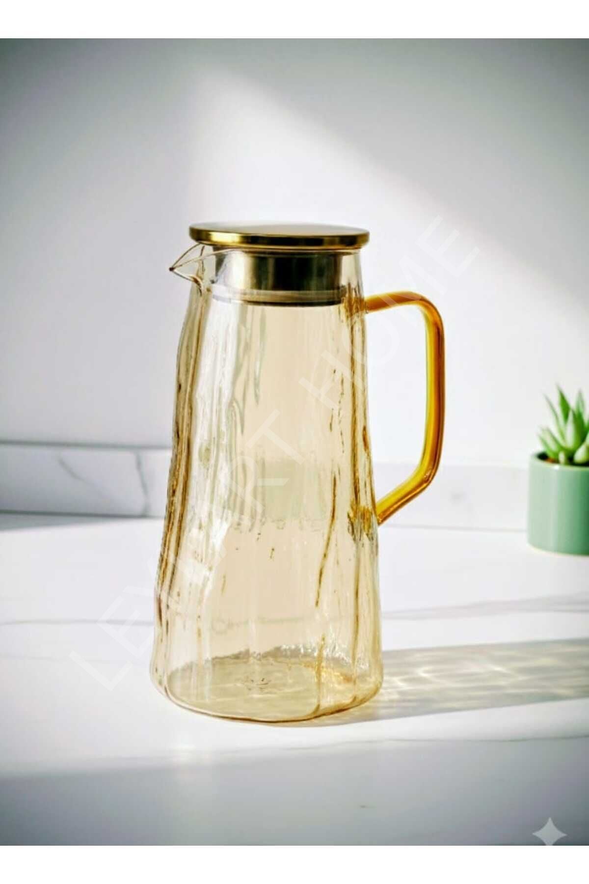 Amber 1800 ML Borosilikat Cam Sürahi – Metal Kapaklı Lüks Seri