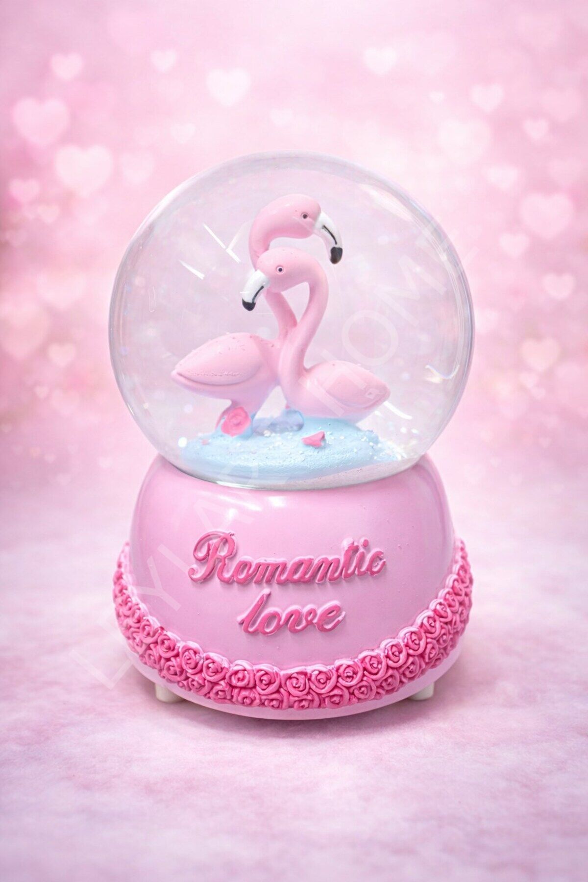 Aşk Flamingoları Kar Küresi – Romantik Dekoratif Hediye