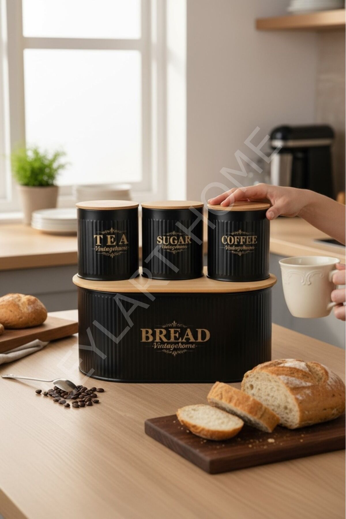 Mutfakta hem şıklığı hem de düzeni ön planda tutanlar için ideal! Bu set, dayanıklı metal gövdesi ve doğal bambu kapaklarıyla hem ekmeklerinizi hem de kuru gıdalarınızı taze tutar.; Minimalist tasarımı sayesinde her mutfak dekoruna uyum sağlar.; Evinizde pratik kullanım ve estetik görünümü bir araya getirir.;
