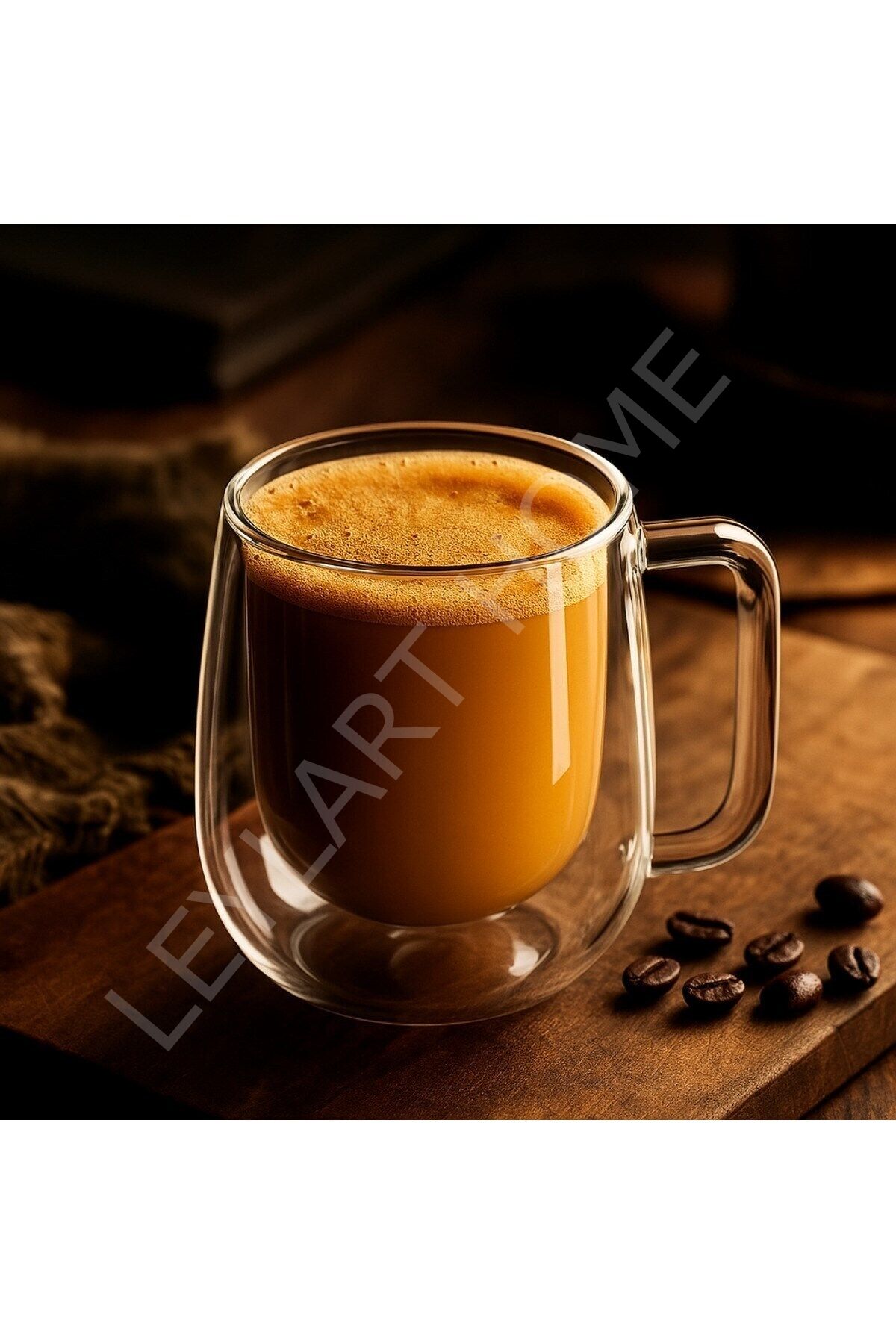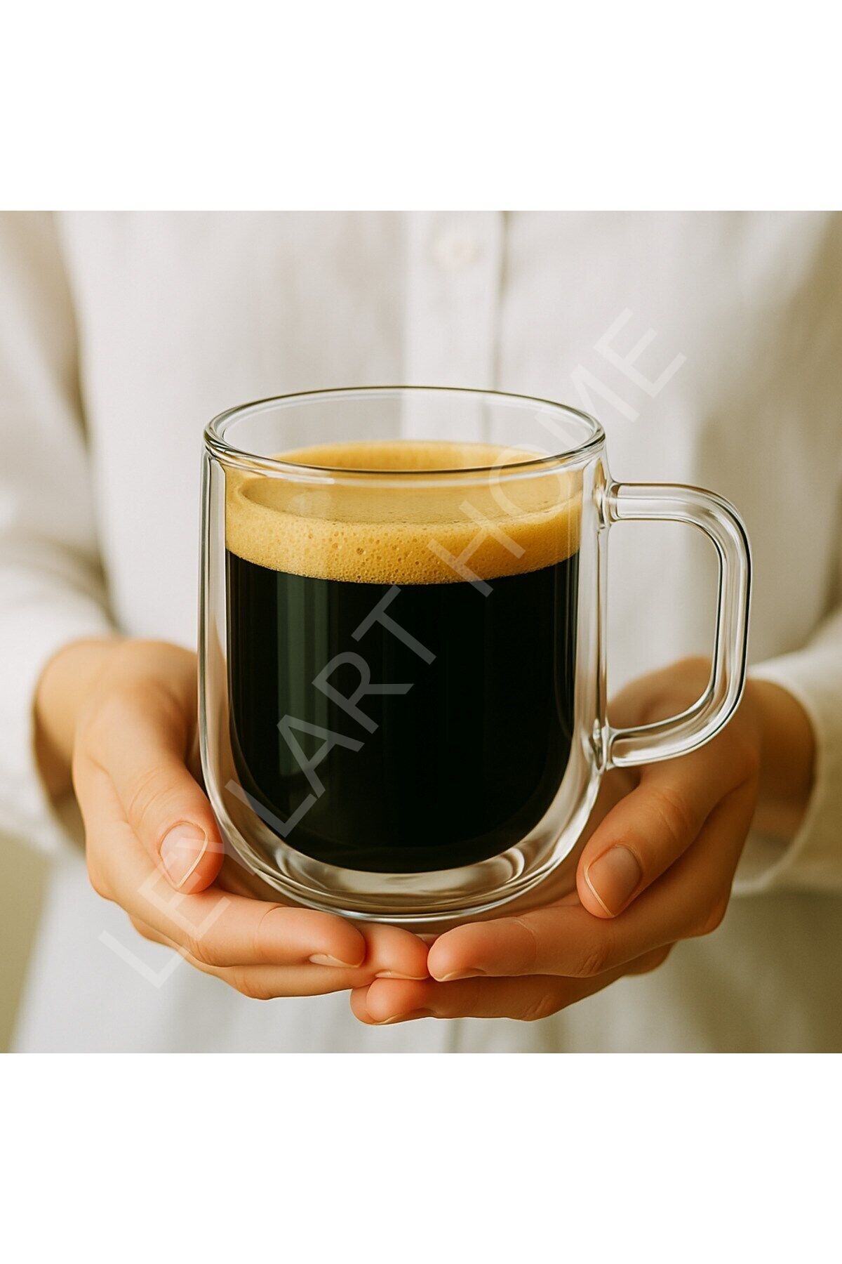Çift Camlı Çift Çidarlı Bardak 300 ml Ev Ofis Fincant Çift Katlı Isı Yalıtımlı Kulplu Kupa