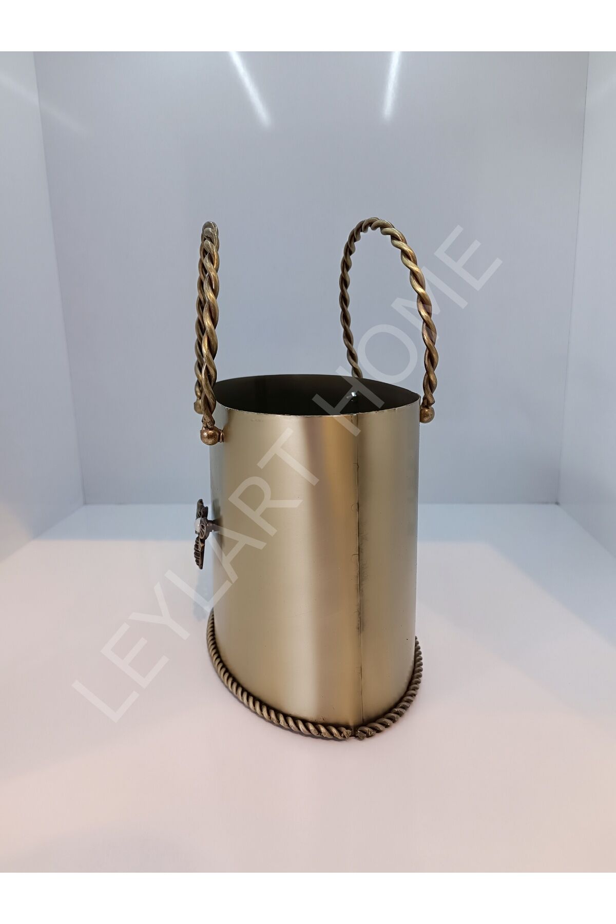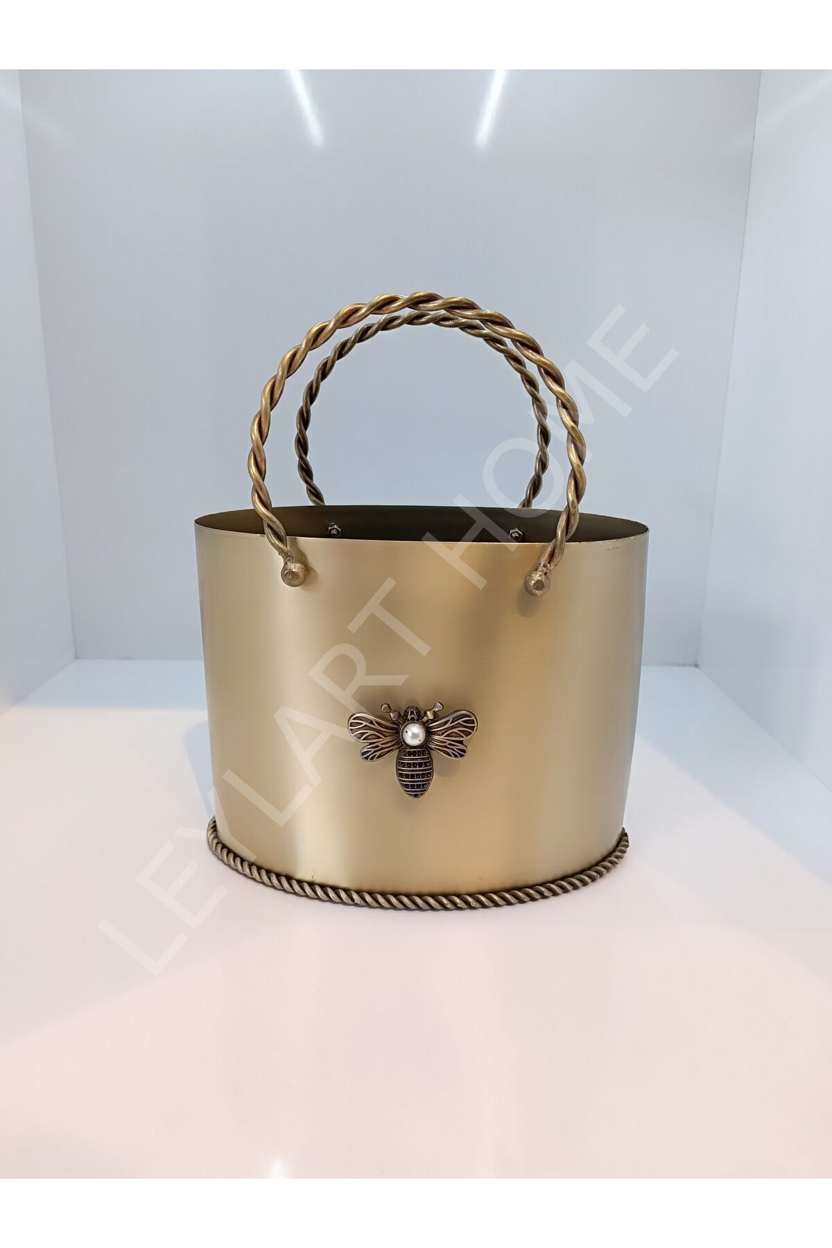 Eskitme Çanta saksı- Altın Arı Figürlü Dekoratif Metal saksı