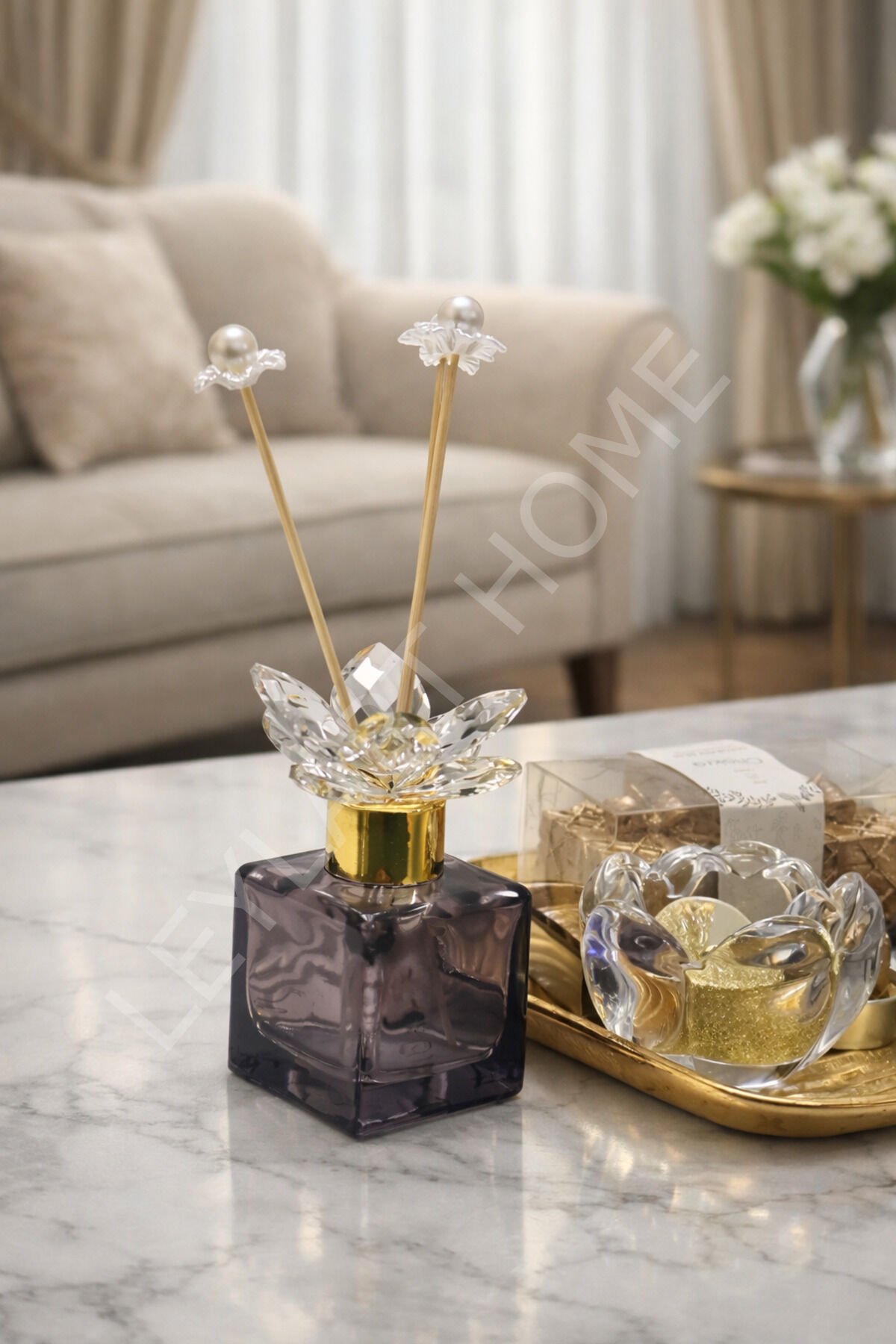 Kristal Taşlı ve Altın Detaylı Koku Şişesi Ev ve ofis dekorasyonunuza rafine bir dokunuş katmak için özel olarak tasarlanmış bu muhteşem koku şişesi seti, kristal taşlar ve altın detaylarla bezeli, özel bir estetik sunuyor. ; Bu set, zarafeti ve lüksü bir araya getirerek mekanınıza unutulmaz bir atmosfer kazandırıyor. ; Ürün Detayları: Kristal Taşlı Koku Şişesi: Altın detaylı ve şeffaf cam malzemeden üretilmiş, zarif bir tasarıma sahip koku şişesi. ; İncelikle yerleştirilmiş kristal taşlar, şişenin etrafında zarafeti ve ışıltıyı bir araya getirir. ; Şişenin üst kısmında bulunan altın detaylar, estetik bir bütünlük sağlar. ; Altın Detaylı Koku Çubukları: Altın renkte detaylarla işlenmiş koku çubukları, şişeyle uyum içindeki estetik bir tamamlayıcıdır. ; Zarafet ve fonksiyonelliği birleştirerek hoş bir koku dağılımı sağlar. ; Her bir çubuk, kristal taşlar ve altın detaylarla zenginleştirilmiş bir sunum sağlar. ; Fonksiyonellik: Koku şişesi, kullanıcıların tercih ettikleri koku yağları veya parfümlerle kişiselleştirilebilir. ; Set, masaüstü, tuvalet masası veya dekoratif raflarda zarif bir sergileme sunar. ; Bu Kristal Taşlı ve Altın Detaylı Koku Şişesi Seti, hem görsel şıklığı hem de koku deneyimiyle dikkat çekici bir dekoratif öğedir. ; Odanızın atmosferini yükseltmek ve kişisel alanınıza lüks bir dokunuş eklemek için ideal bir seçenektir. ; Not: Ürüne koku dahil değildir.;