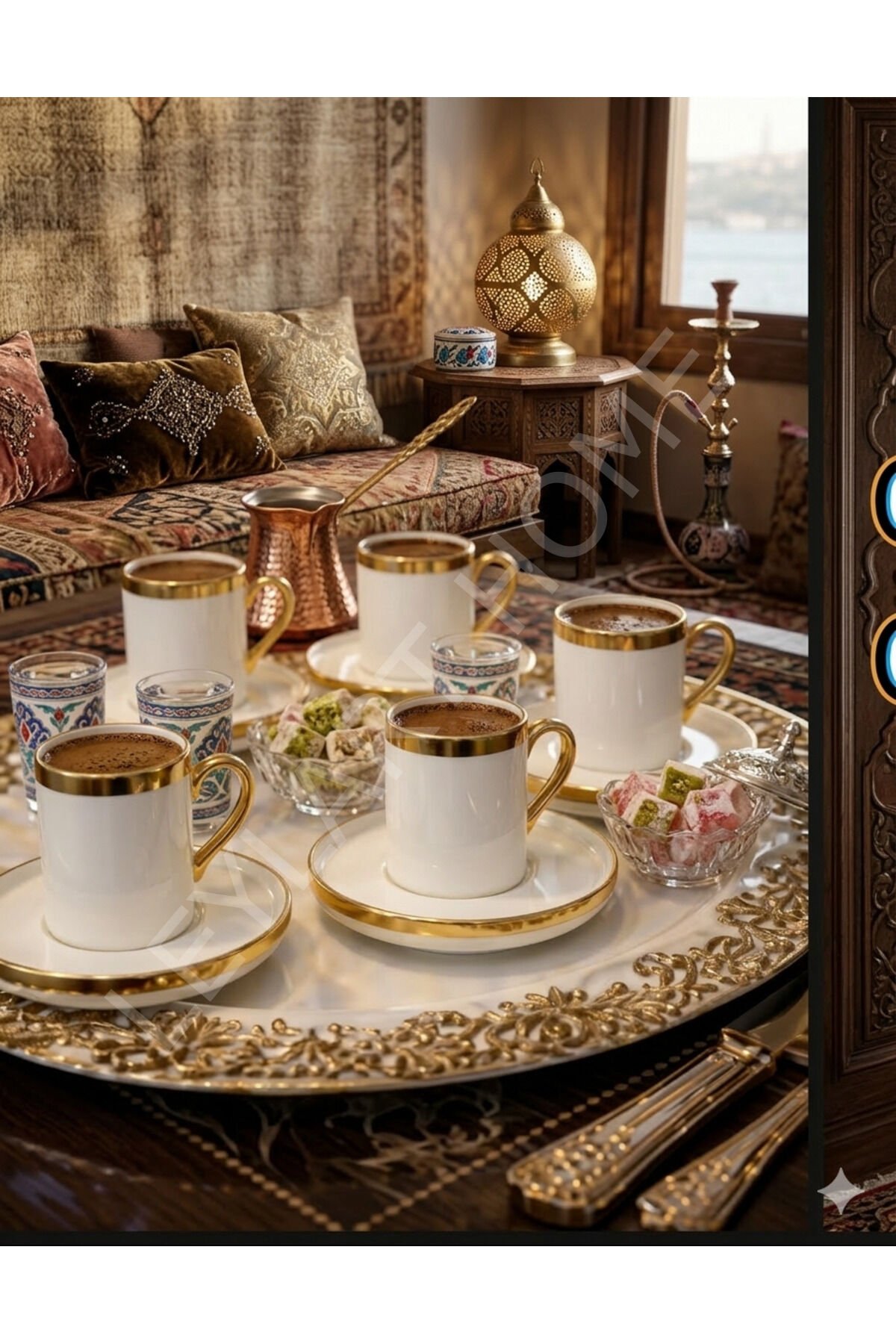 - Zarif tasarımıyla dikkat çeken gold porselen Türk kahvesi fincan takımı, kahve keyfinizi şık bir dokunuşla taçlandırır.; - 6 adet fincandan oluşan set, hem günlük kullanım hem de özel misafirleriniz için idealdir.; - Porselen malzeme sayesinde dayanıklılık ve uzun ömürlü kullanım sunar.; - Altın detaylarıyla zenginleştirilmiş gold rengi, sofralarınıza lüks bir hava katar.; - Türk kahvesi fincanları, geleneksel kahve kültürünüzü modern bir estetikle buluşturur.;