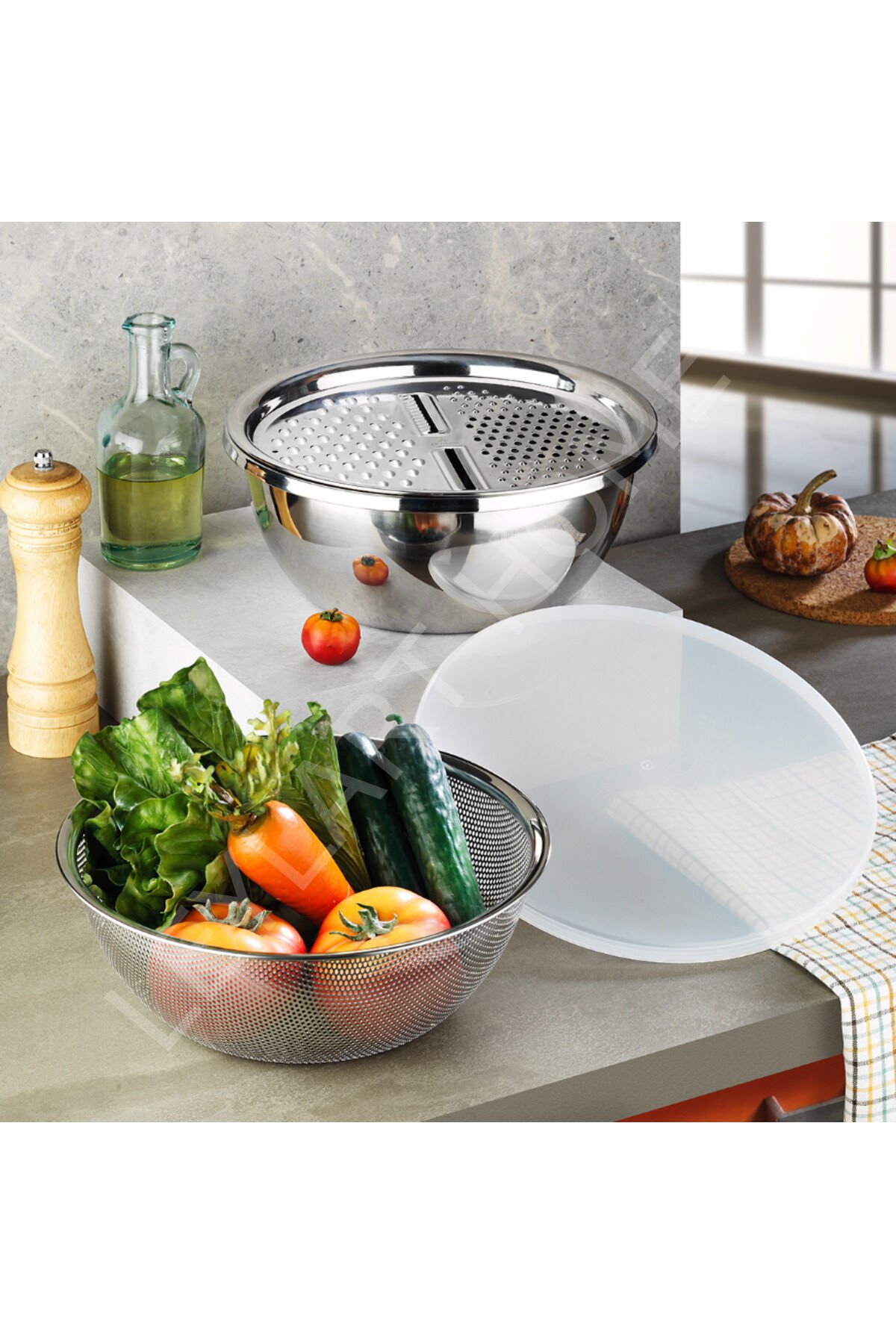 Hazneli Rende Paslanmaz Çelik 4 Farklı Rendeleme Çok Amaçlı Karıştırma Kabı Rendeli Kap 24 Cm
