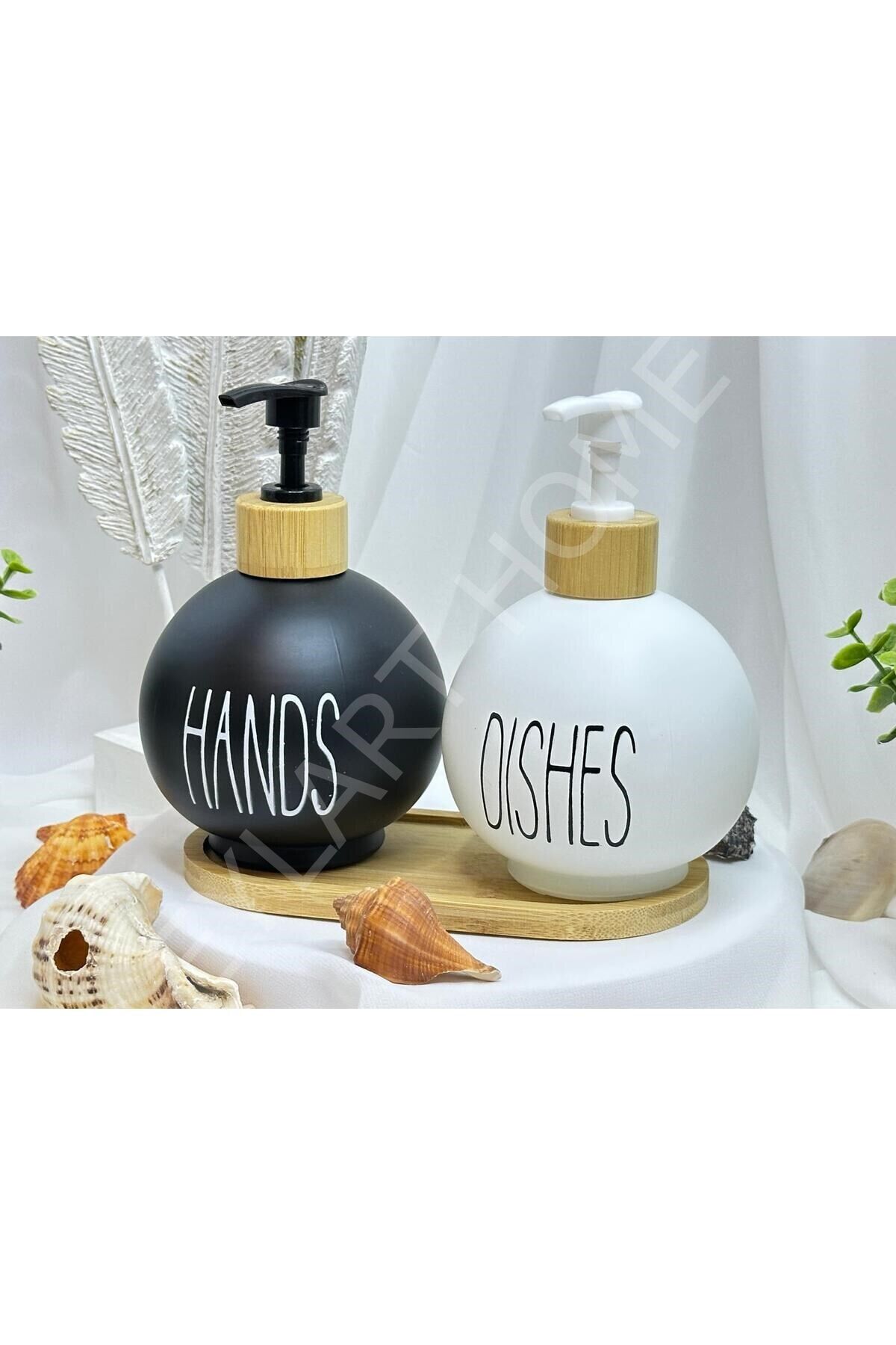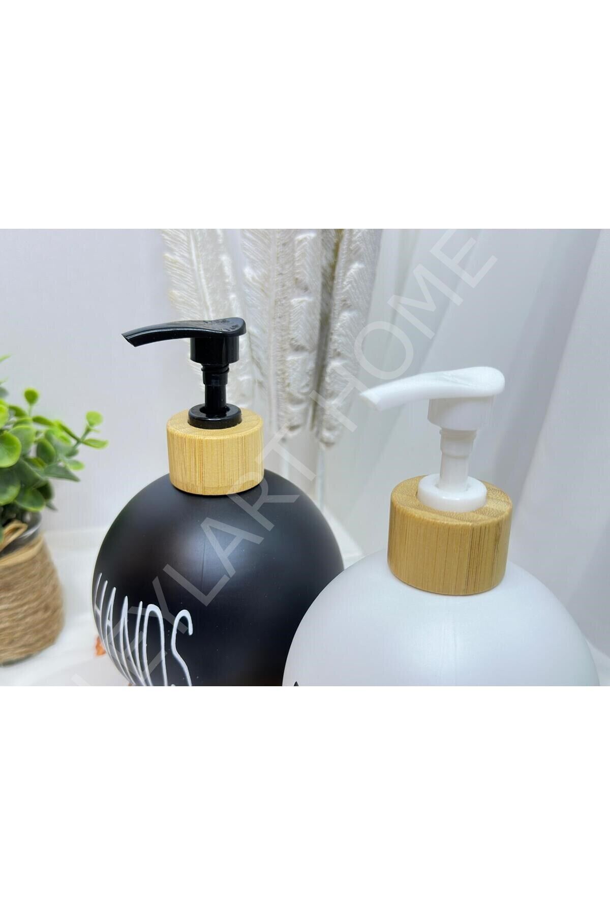 İskandinav Tasarım Bambu Detay Seramik Sıvı Sabunluk Sıvı Deterjanlık Seti 2li Beyaz Ve Siyah Renk
