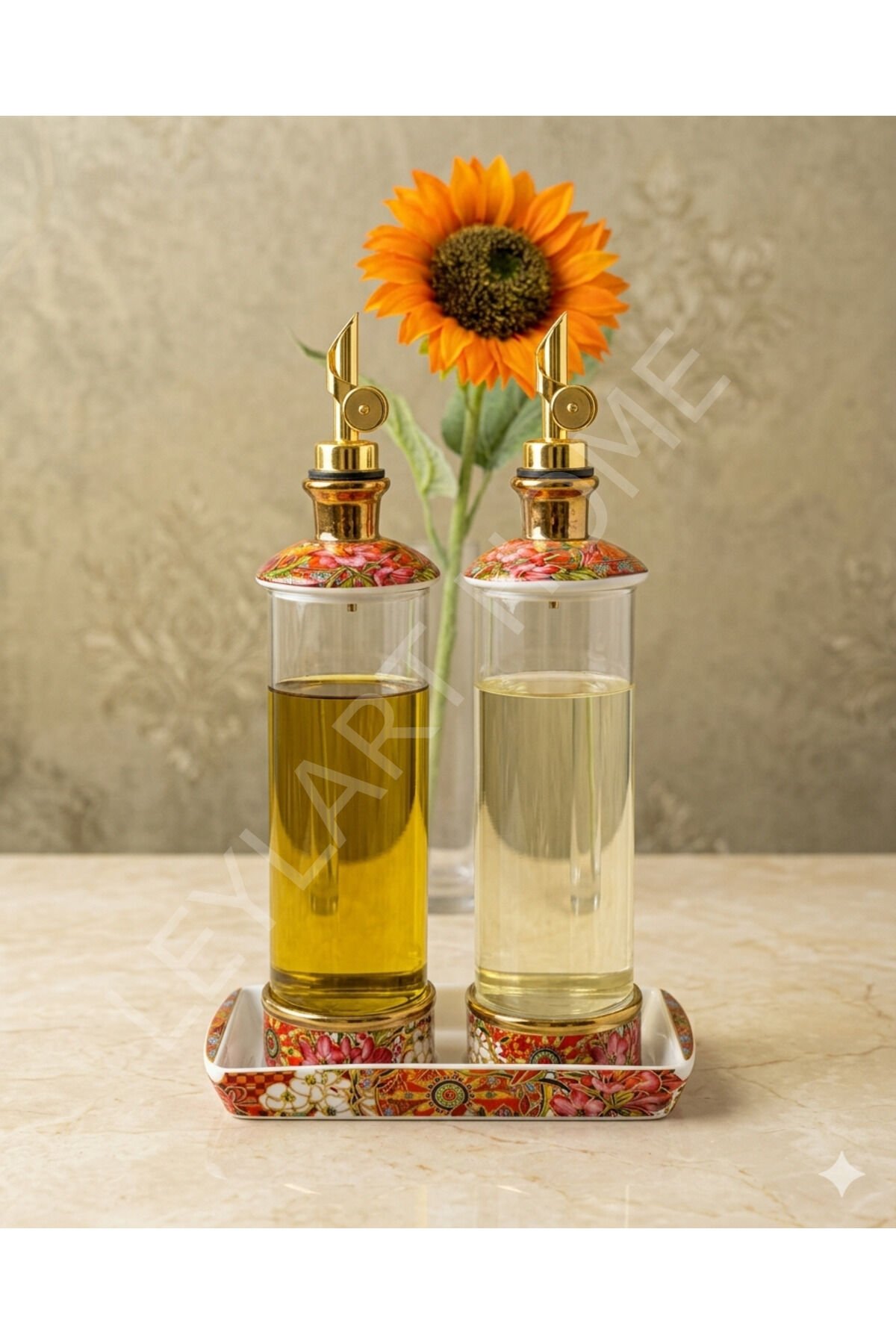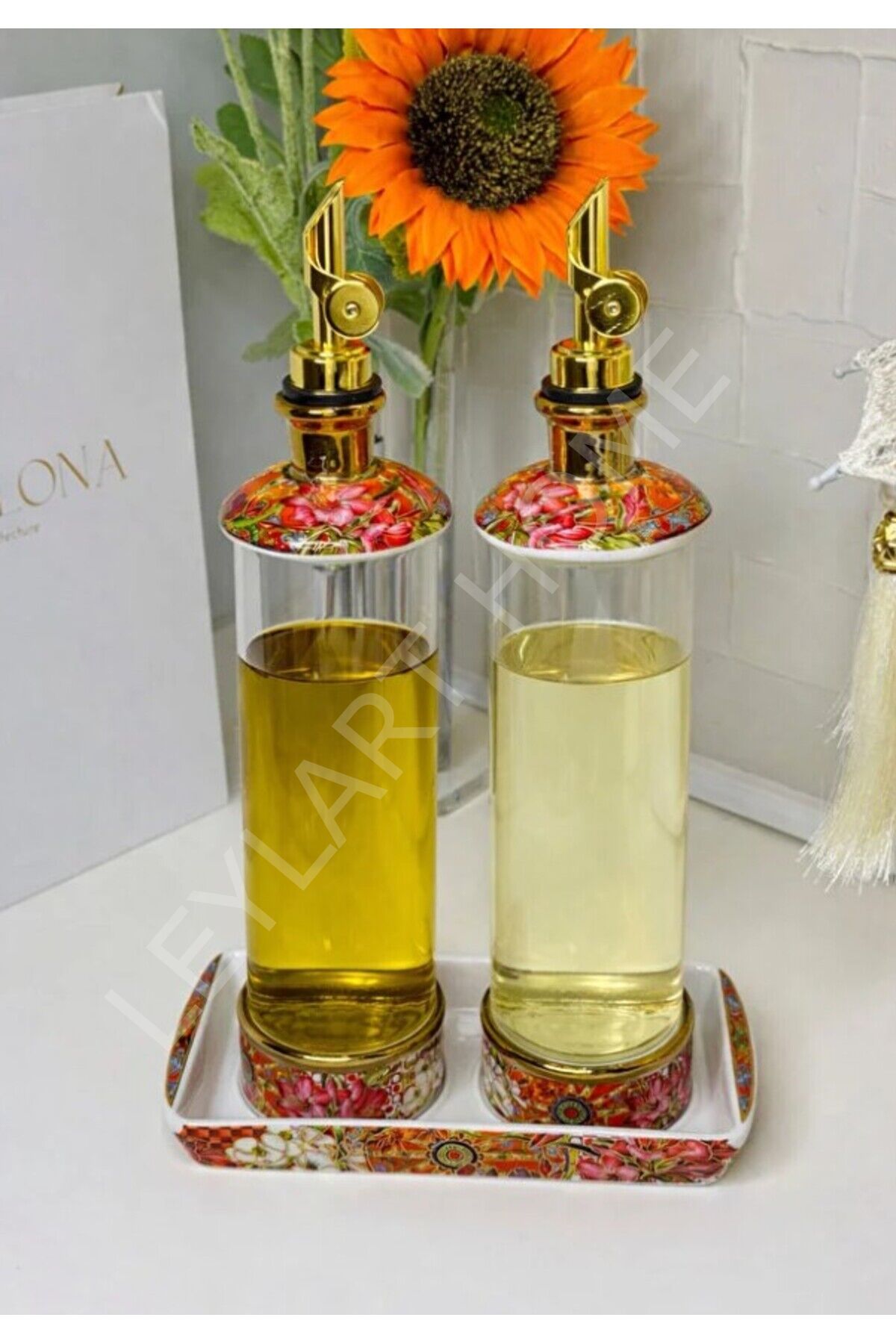 LÜX 2 Li Porselen Standlı Cam Yağdanlık