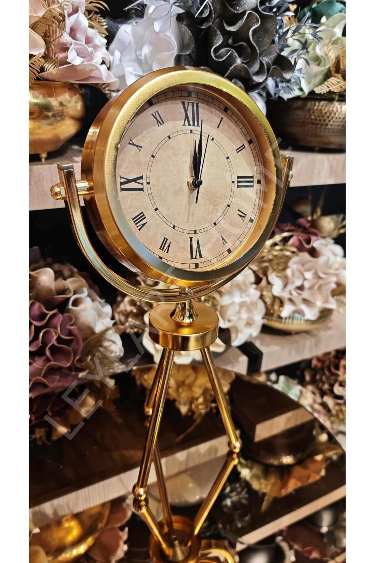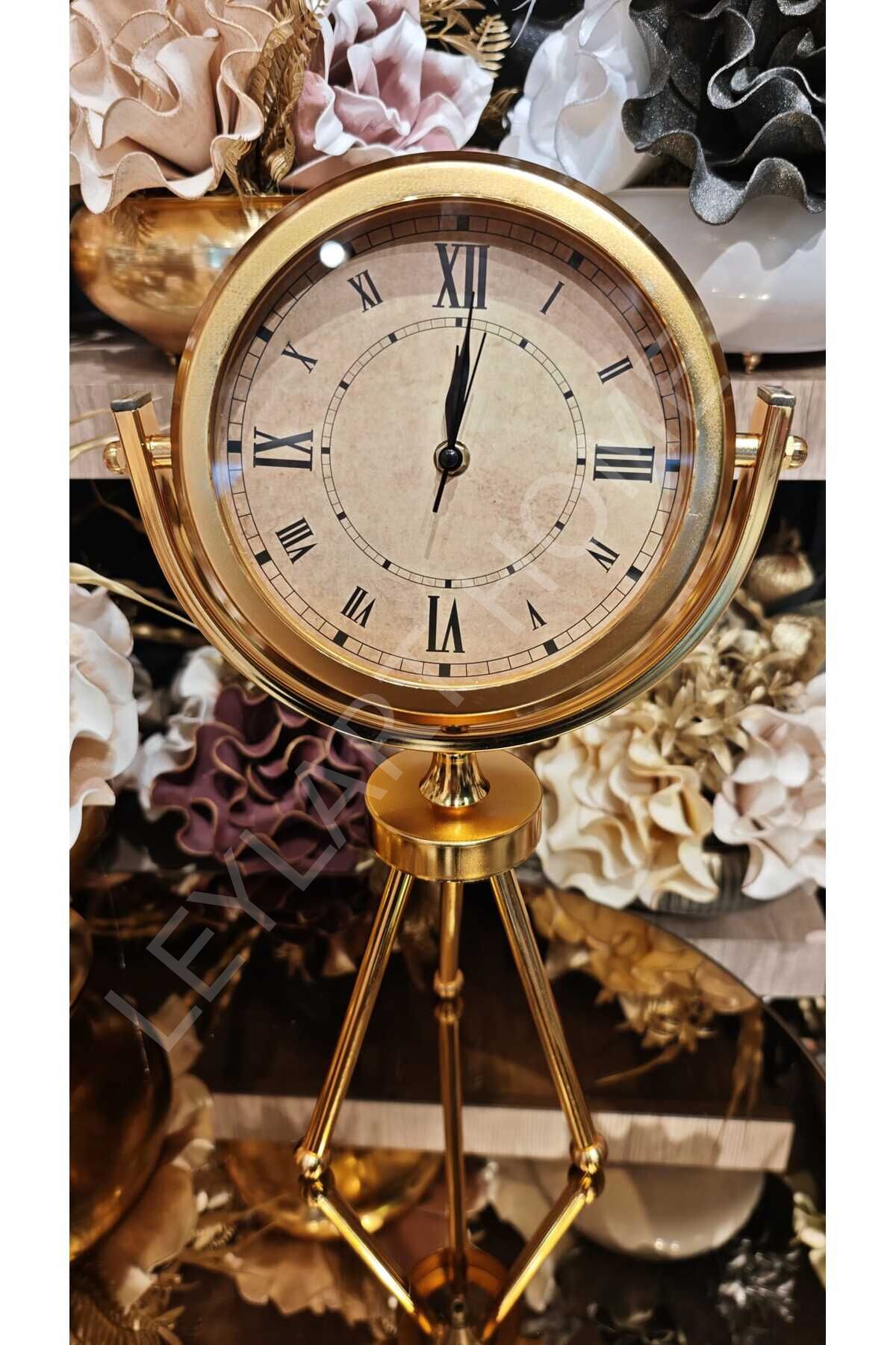 Modern tasarımıyla dikkat çeken metal gold kaplamalı masa saati, ev ve ofis dekorasyonunuza şıklık katar; Analog zaman göstergesi sayesinde klasik ve zamansız bir görünüm sunar, her türlü mekanın atmosferine kolayca uyum sağlar; Dayanıklı metal materyali ile uzun ömürlü kullanım vaat eder; günlük kullanımda bile formunu korur;