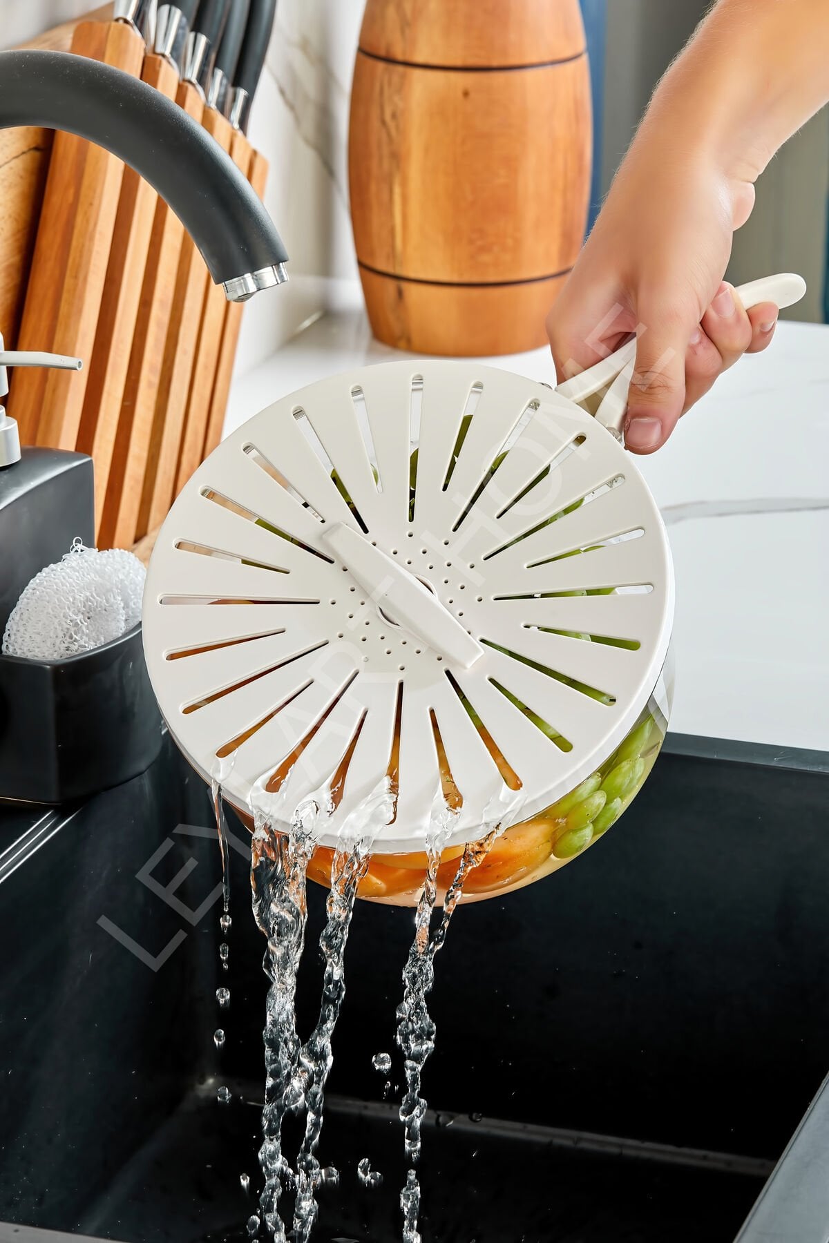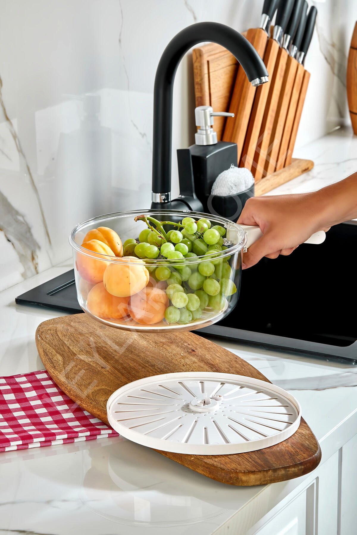 - Dayanıklı plastik malzemeden üretilmiş, uzun ömürlü kullanım sunar.; - Tek parça halinde gelen bu ürün, mutfakta pratik bir saklama çözümü sağlar.; - Türkiye menşeli olup, yerel üretimle kaliteyi sofralarınıza taşır.; - Espas Home markasının güvencesiyle, güvenle kullanabileceğiniz bir ürün sunar.; - Elde yıkama önerisiyle kolay temizlenebilir ve hijyenik kalır.; - Gıda temasında güvenli olması için özel olarak tasarlanmıştır, yiyeceklerinizi güvenle saklayabilirsiniz.