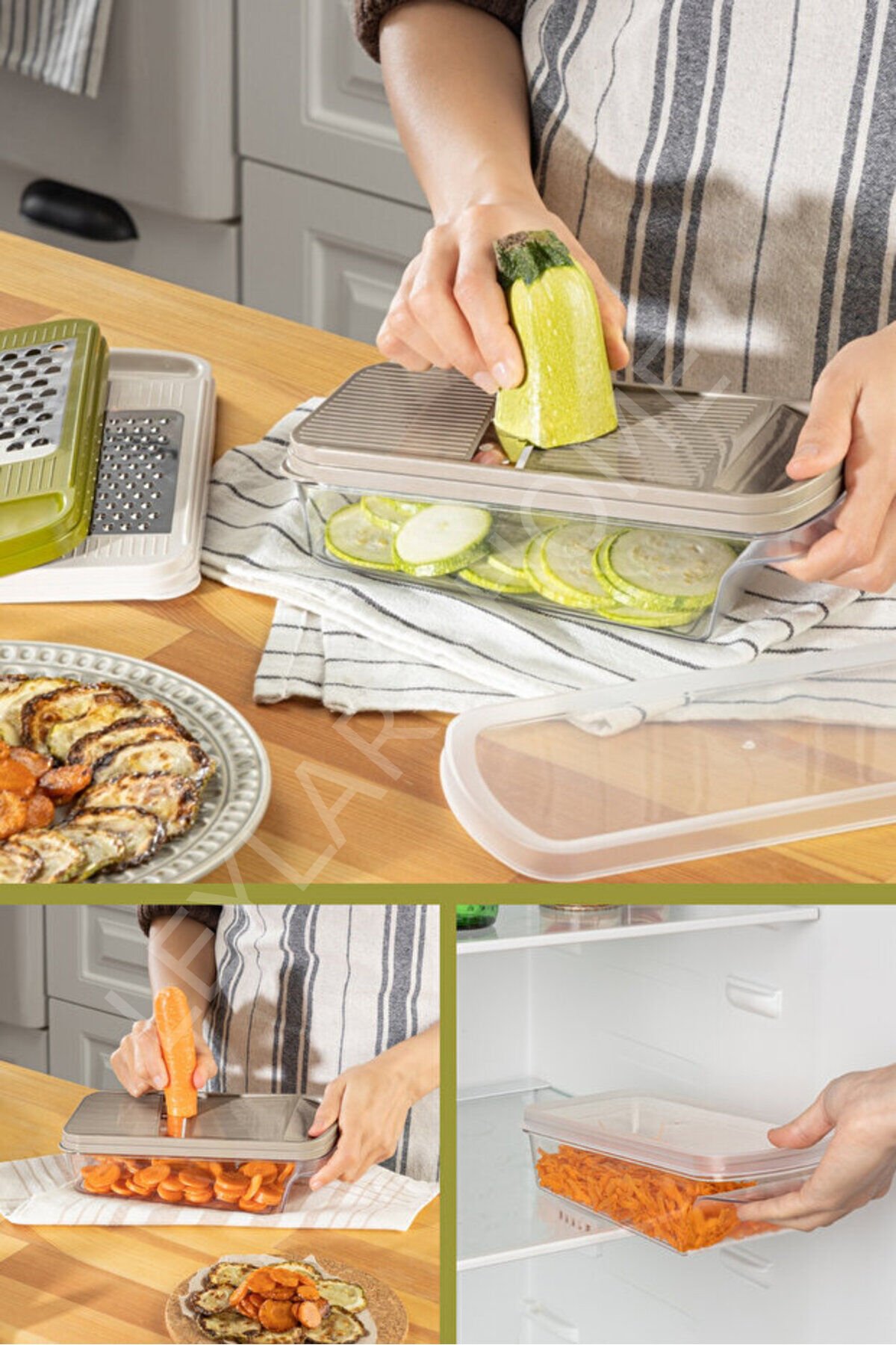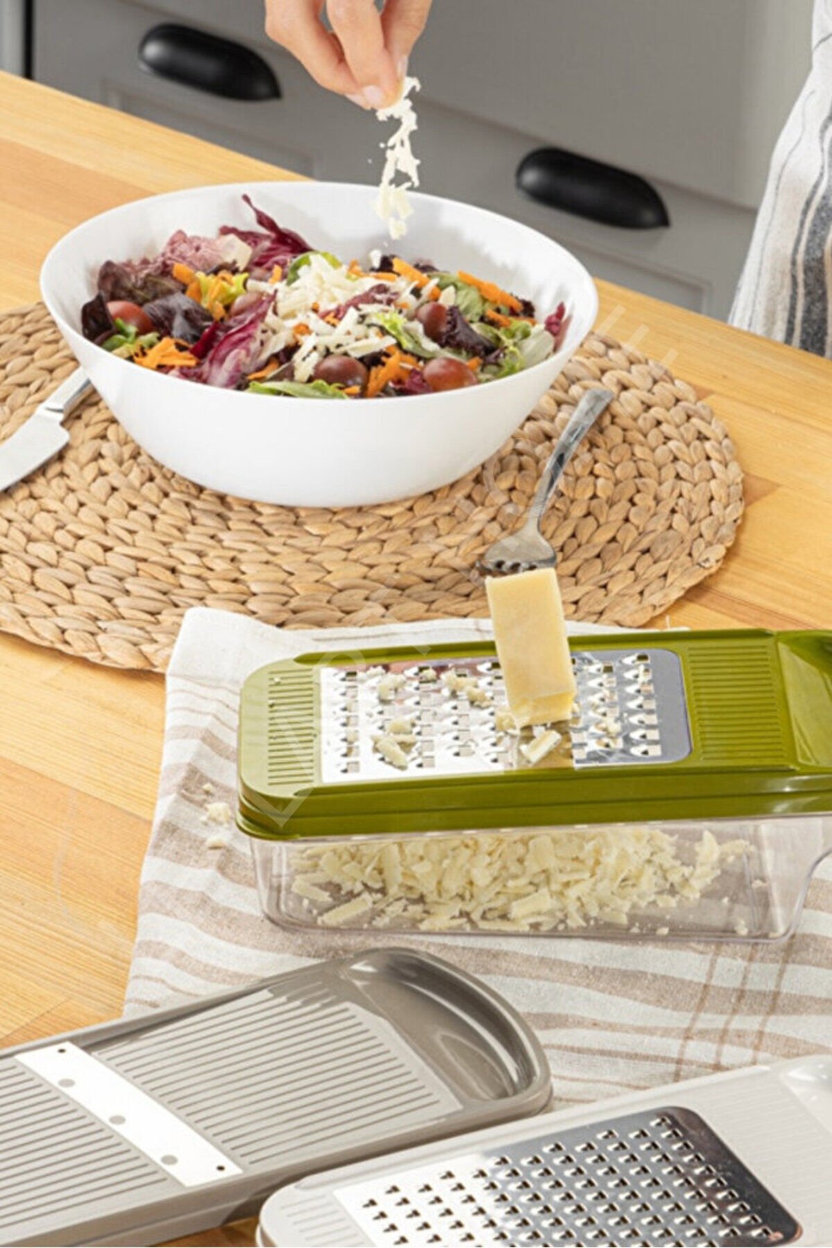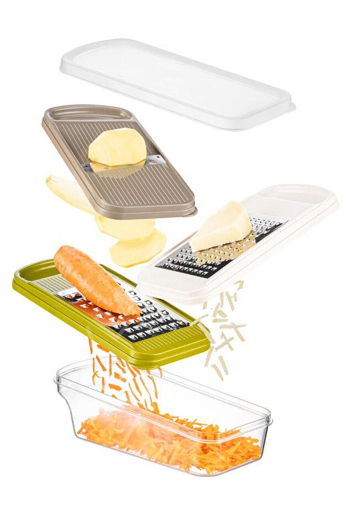 - Plastik malzeme kullanımı sayesinde hafif ve kolay taşınabilir bir tasarıma sahiptir.; - 3 farklı başlık seçeneği ile çeşitli meyve ve sebzeleri kolayca dilimleyebilir ve doğrayabilirsiniz.; - Hazneli kapak tasarımı, rendelenmiş malzemelerinizi saklamanıza ve temizlik sırasında kolayca boşaltmanıza olanak tanır.;