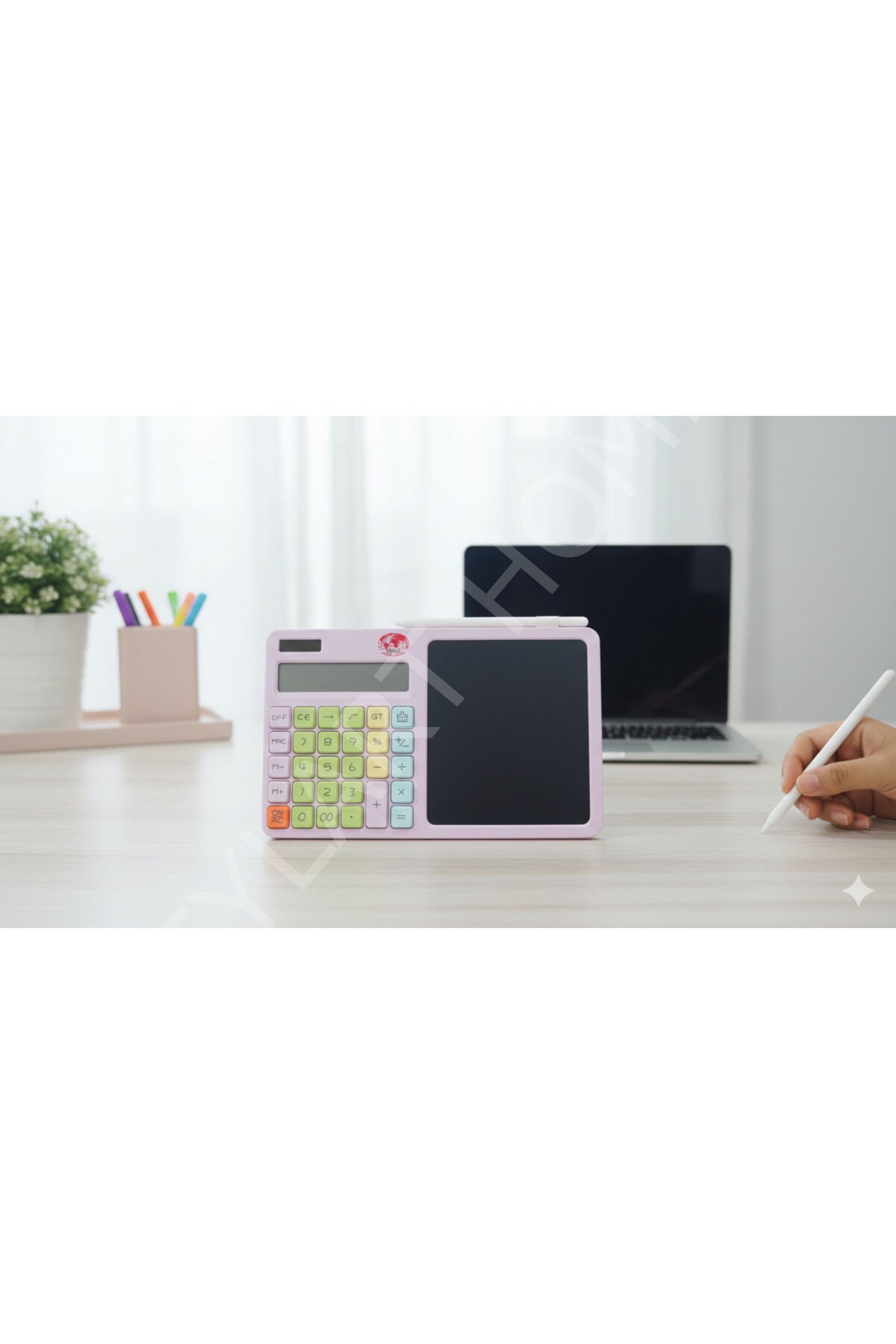 Pastel tonların ferahlığı, pratikliğin zekâsıyla buluştu.; PastelMath Notlu Hesap Makinesi, klasik hesap makinesinin ötesine geçerek yanındaki silinebilir yazı alanıyla hızlı not alma özgürlüğü sunar.; Geniş ve yumuşak tuşları sayesinde uzun hesaplamalarda bile parmak yormaz.; Yan tarafındaki LCD not alanı, geçici işlemler, küçük notlar ve hatırlatmalar için idealdir.; Sil, yaz, tekrar kullan — kağıt karmaşasına son.; Ofiste, okulda, dükkânda ya da evde… Hesap yaparken not almaktan vazgeçemeyenler için akıllı bir çözüm.; karışık renk gönderilir