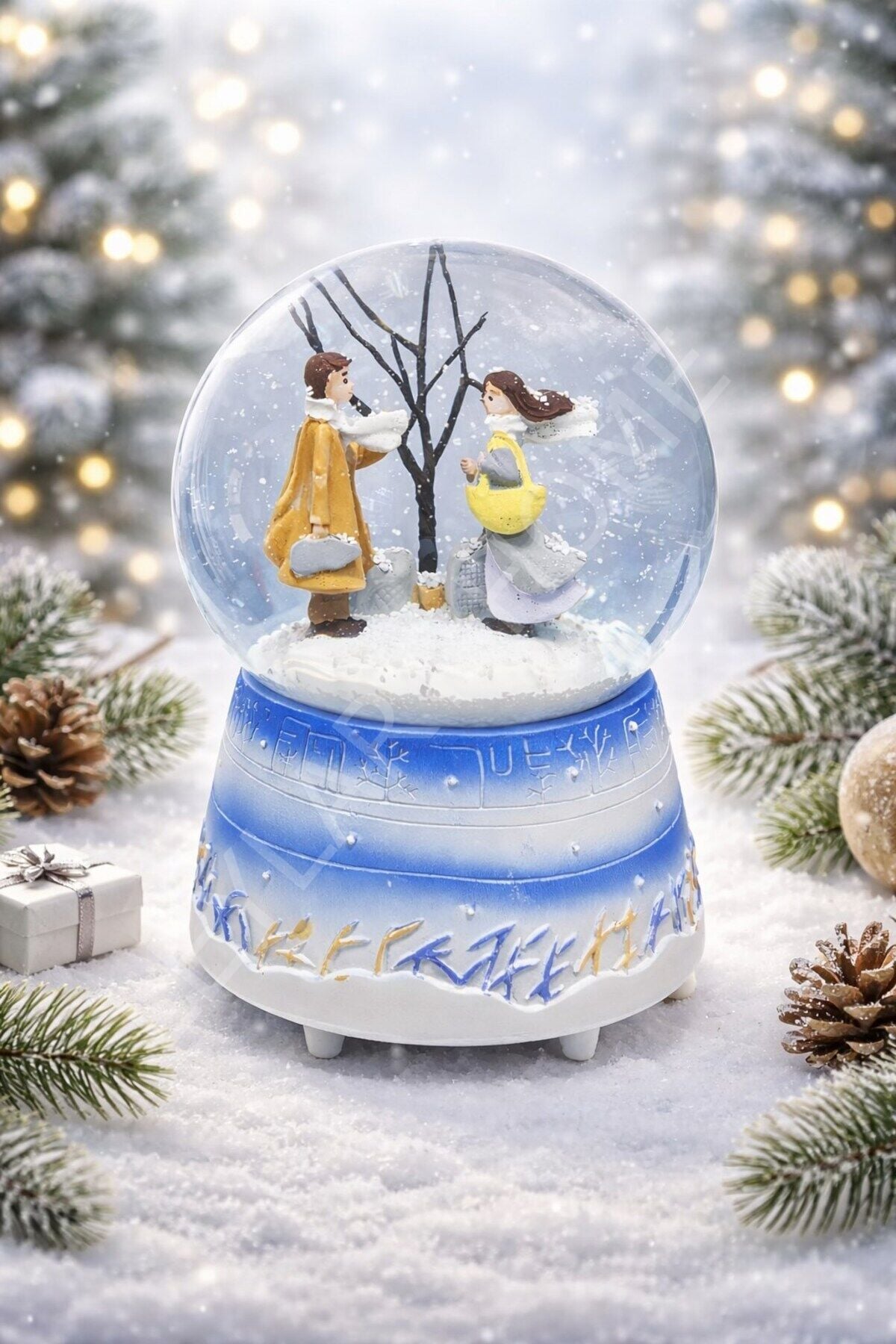 Romantik Kar Küresi – Çift Figürlü Romantik Kış Masalı Kar Küresi Pilli