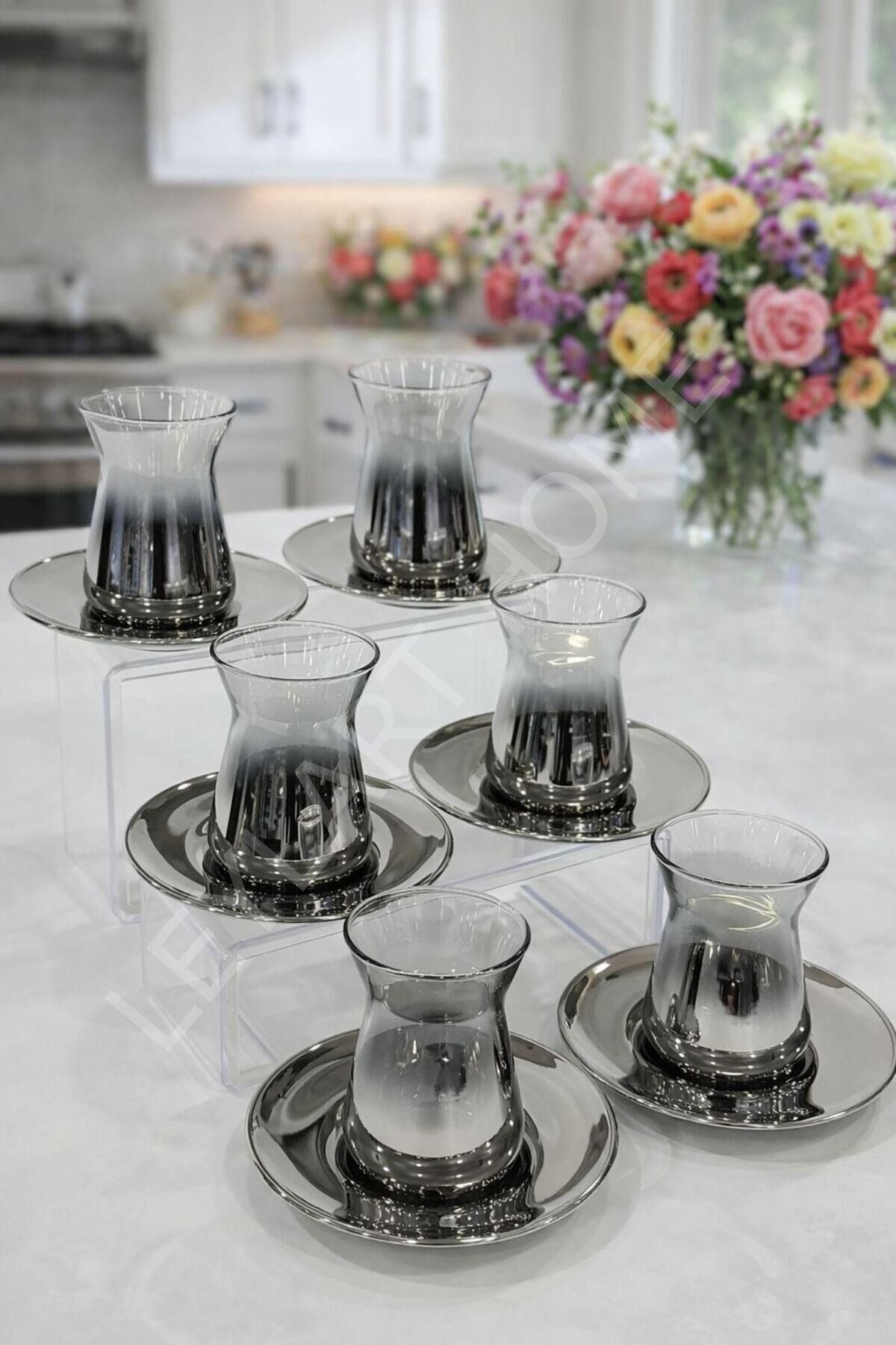 - Safir Füme Çay Serisi, zarif tasarımıyla çay keyfinizi şık bir deneyime dönüştürür.; - 12 parça çay seti, aile ve arkadaşlarınızla birlikte çay saatlerinizi keyifle geçirmenizi sağlar.; - Füme camın estetik görünümü, çayın rengini ve berraklığını vurgulayarak görsel bir şölen sunar.; - Her bir çay bardağı, özel tasarlanmış sapları sayesinde rahat ve güvenli bir kullanım imkanı tanır.; - Dayanıklı cam malzemesi, uzun ömürlü kullanım vaat eder ve sık yıkamalara karşı dirençlidir.; - Modern ve minimalist çizgilerle tasarlanmış bu çay seti, her türlü masa düzenine kolayca uyum sağlar.; - Safir Füme Çay Serisi, özel günlerde sevdiklerinize hediye olarak da ideal bir seçenektir.;
