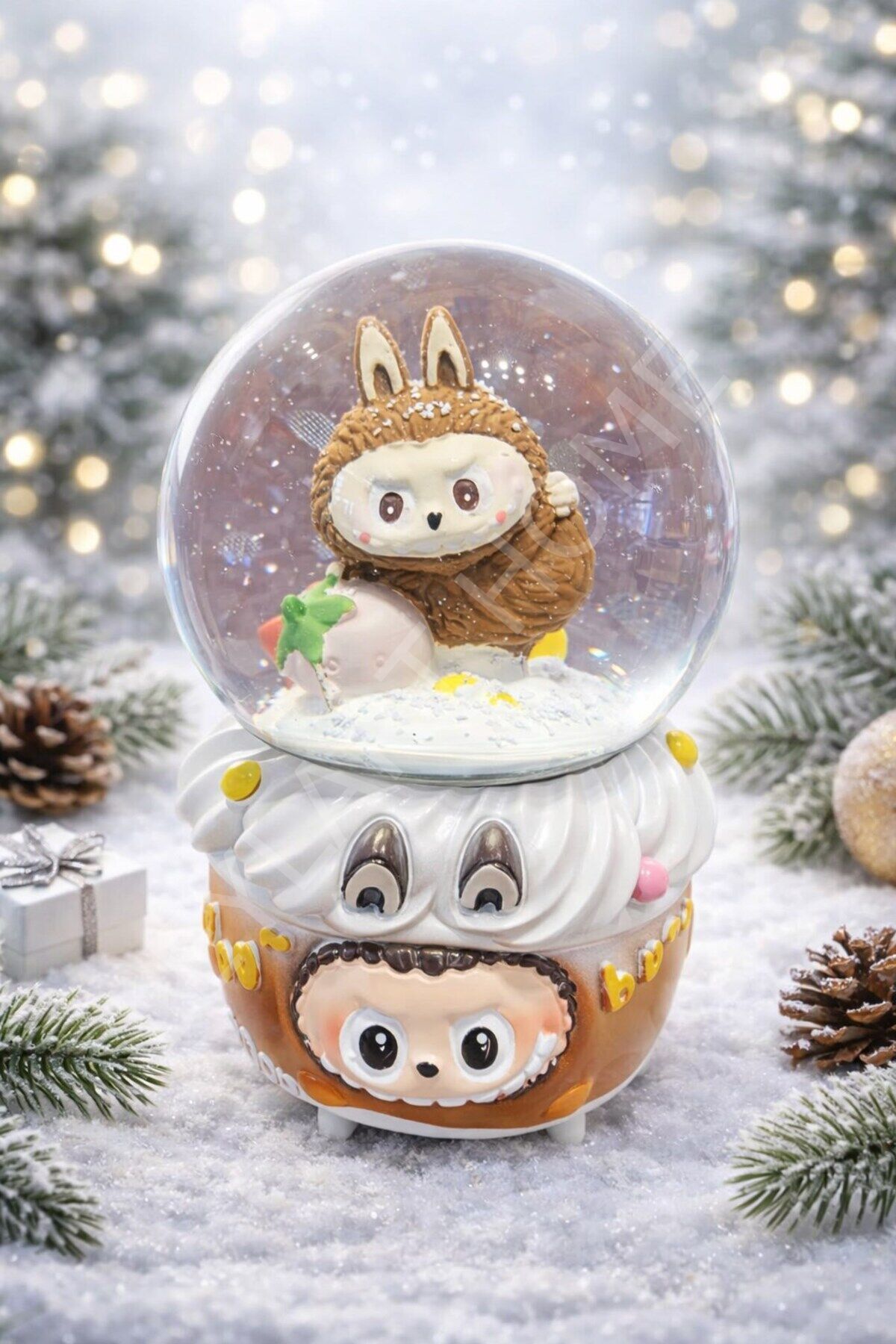 Sevimli Tavşancık Kar Küresi Işıklı Müzikli Dekoratif Hediye PİLLİ